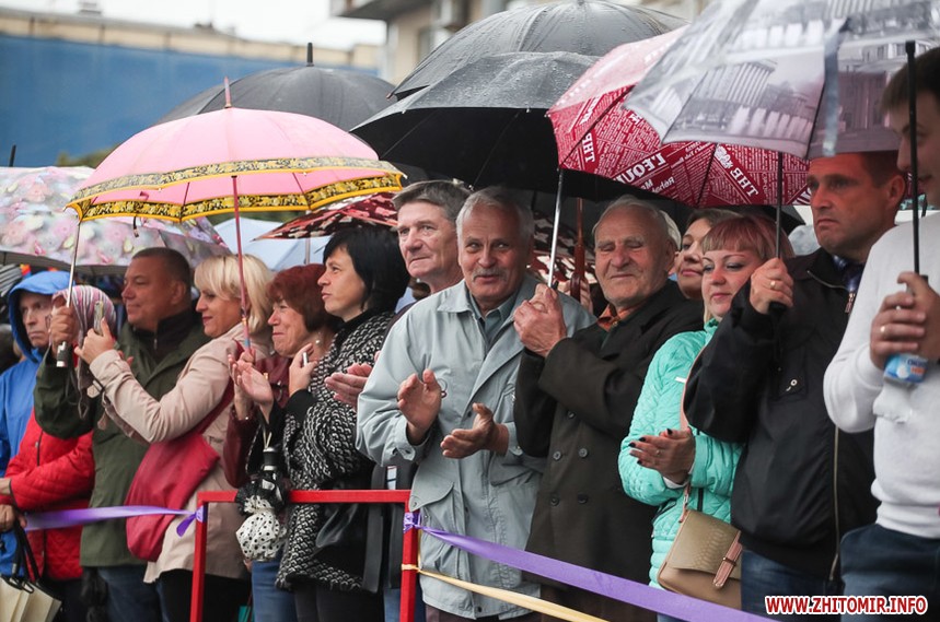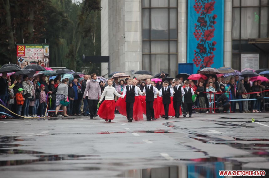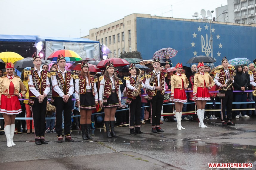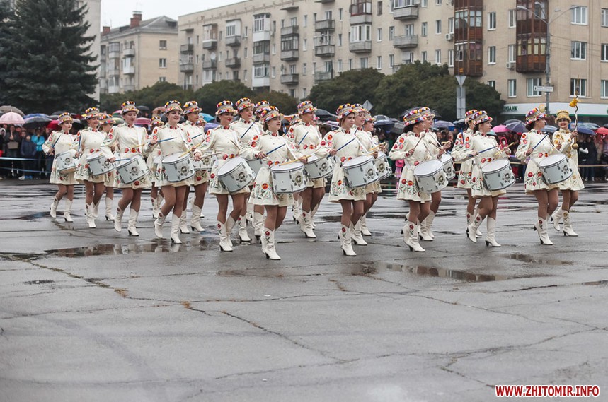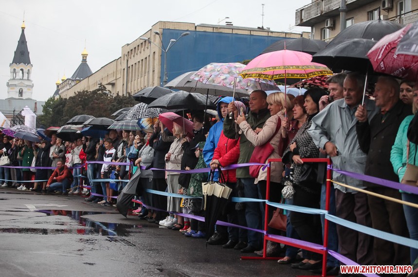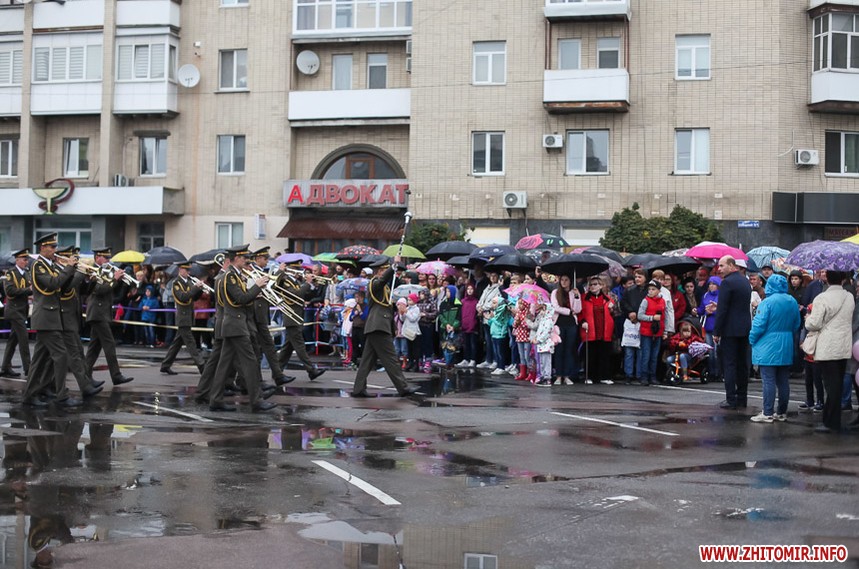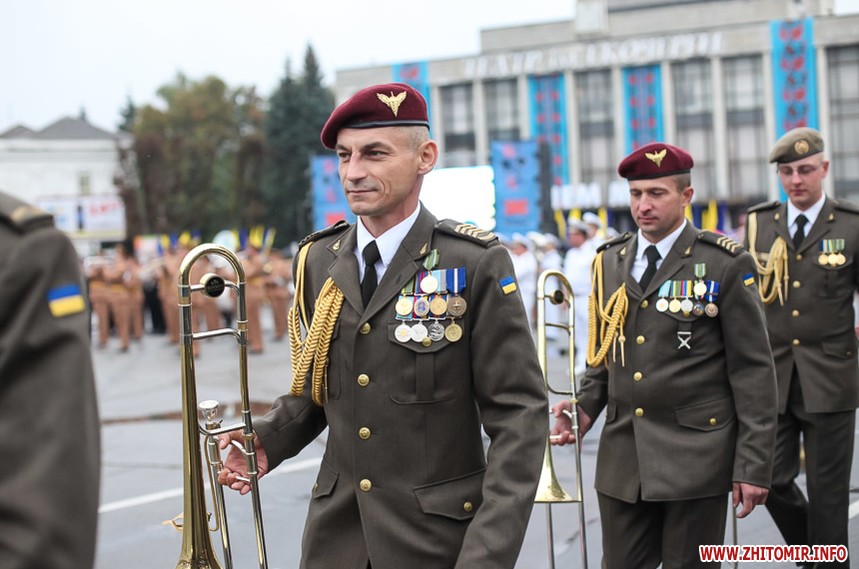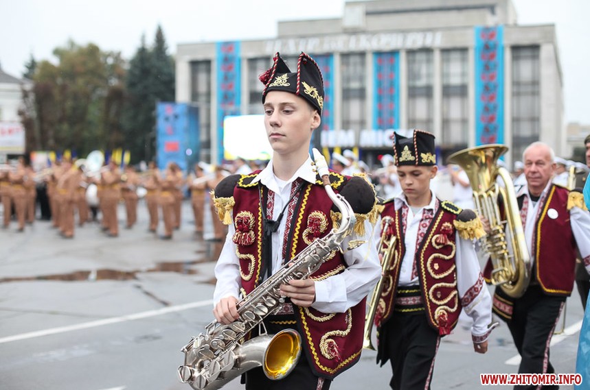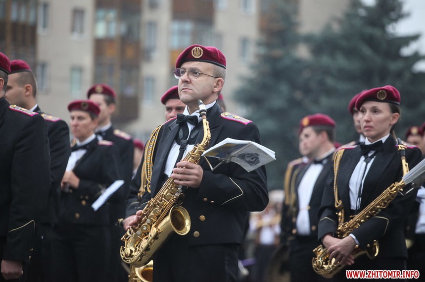 8 вересня дощова погода завадила духовим військовим оркестрам, які з’їхалися з різних куточків України, пройтися ходою вулицею Київською в Житомирі. Але незважаючи на погодні примхи парад військових оркестрів все ж відбувся на майдані Соборному.