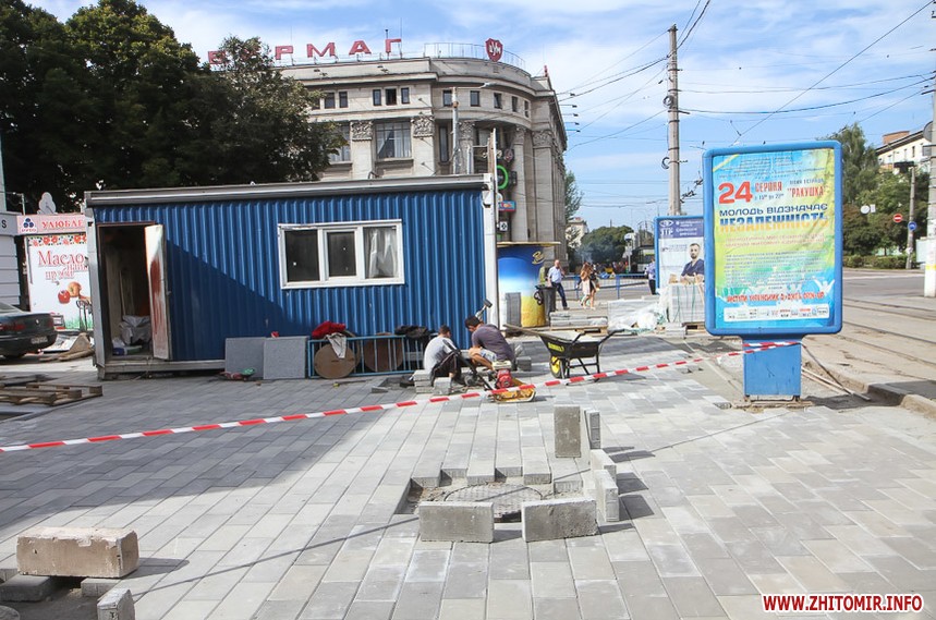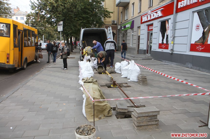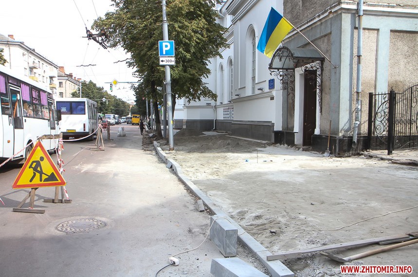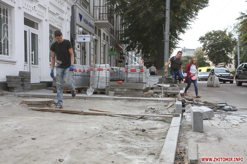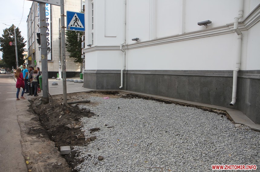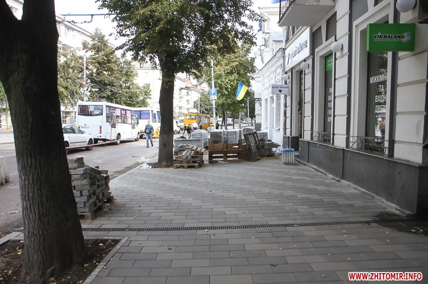 13 вересня Житомир.info помітив, що біля управління освіти Житомирської міської ради частково немає бордюрів. Також роботи з реконструкції тротуарів продовжуються по вулиці Київській біля Михайлівського собору, та частково по вулиці Небесній сотні, навпроти універмагу.