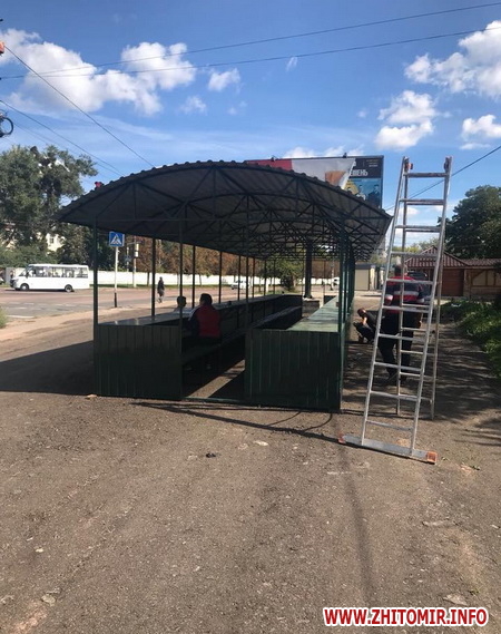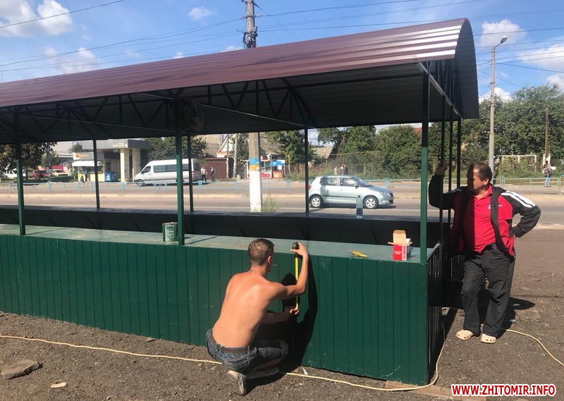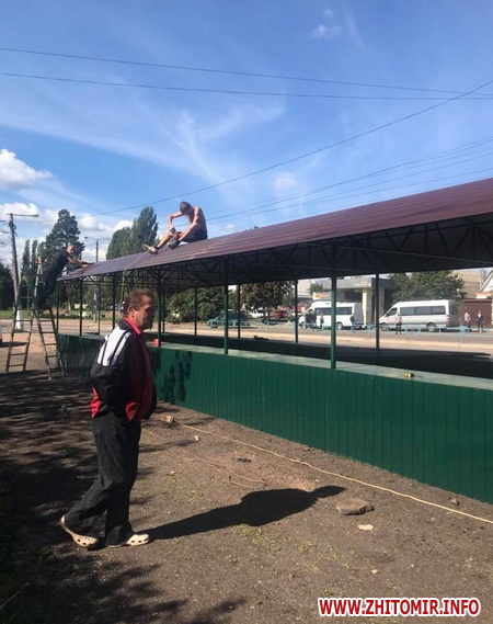 У Житомирі на Корбутівці, навпроти водоканалу, робітники встановлюють павільйон під соціальний ринок.