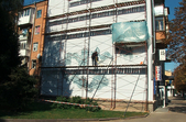 «Зі сторони воно буде виглядати, якщо поставити таймлапс, як ото мавпа стрибає по деревах, я буду туди-сюди скакати і деякі ділянки замальовувати. Орієнтуюсь я за сонцем. Якщо надто сліпить, то переходжу на інші ділянки. Зараз нанесемо фарбу, потім знімемо будівельне риштування, зробимо презентацію, відкриття і розповімо, хто був активним учасником цього всього дійства, хто є меценатом і більш розгорнуто розповімо, що та картина в собі ховає», - каже Дмитро.
