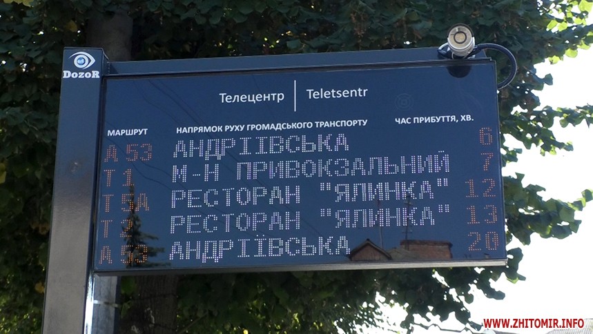 «Близько 10 стоять на зупинках, і вони були встановлені за рахунок інвестора. Зараз за рахунок Бюджету участі будуть встановлюватись сучасні табло. Зараз таке вже встановлено на вул. Театральній, перше з тринадцяти», - розповідає директор КП «Житомиртранспорт» Іван Фурлет.