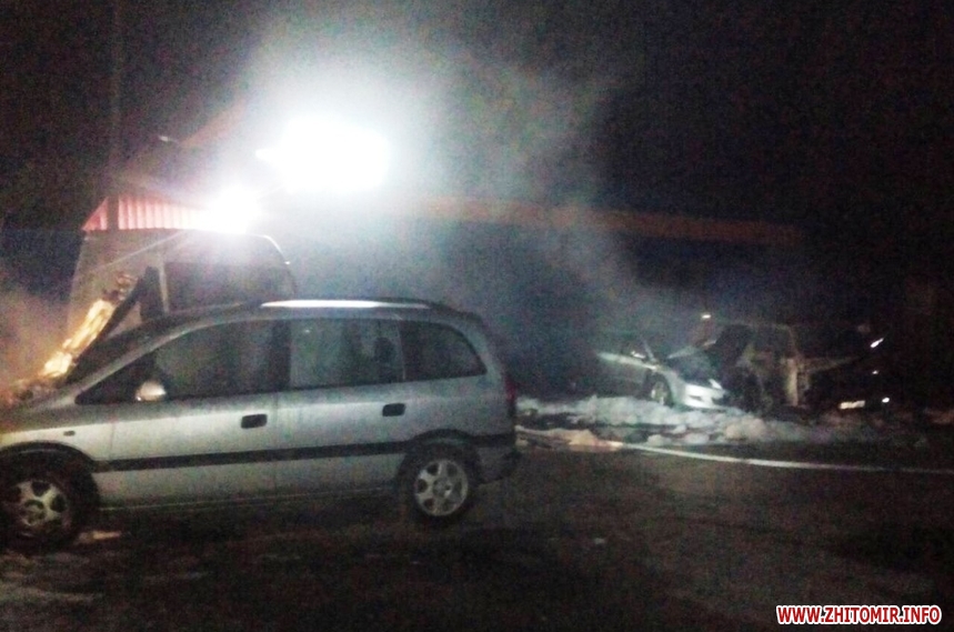 Цієї ж доби вогнеборці гасили автомобіль Daewoo Lanos у селі Соколів Брід Попільнянського району. Авто стояло біля будинку, загоряння виявили сусіди. Вогонь знищив моторний відсік та салон автомобіля. У Бердичеві автомобіль Opel Kadett згорів ущент.
