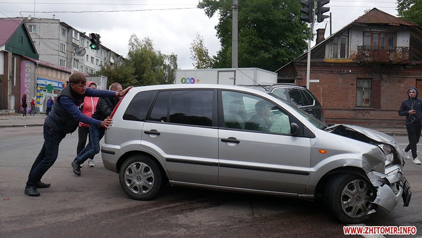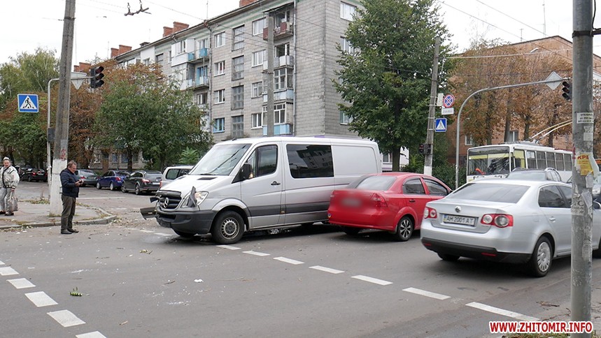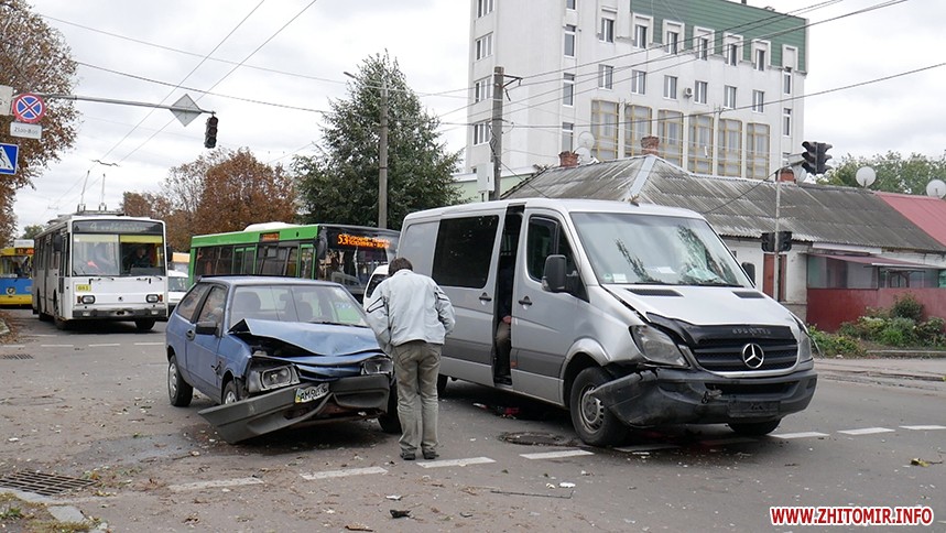 Водій мікроавтобуса Mercedes розповів кореспондентові Житомир.info свою версію події. Водій ВАЗ 2108, виїжджаючи з вулиці Бандери яка є другорядною, не пропустив його автомобіль, який рухався по головній вулиці Покровській, та виїхав назустріч, через що й відбулося зіткнення.