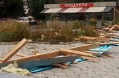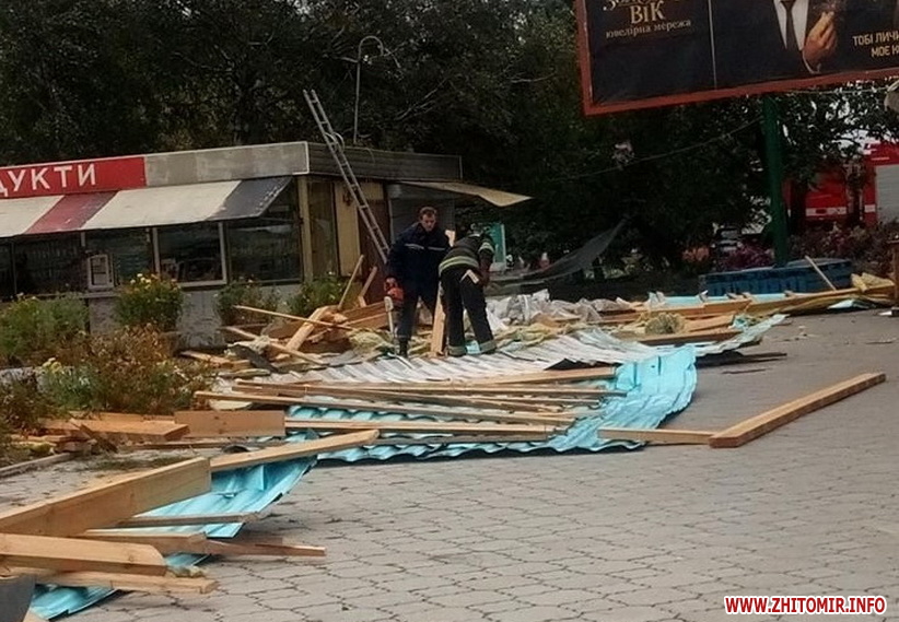 Уламки даху крамниці, які 24 вересня зірвав вітер у Новограді-Волинському Житомирської області, травмували жінку-перехожого.