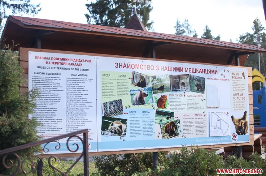 Третім пунктом туру став Центр порятунку ведмедів «Біла скеля» в селі Березівка Житомирського району. Тут, в умовах, наближених до природніх, живуть врятовані від жорстокого поводження ведмеді, які вже не зможуть вижити у дикій природі.