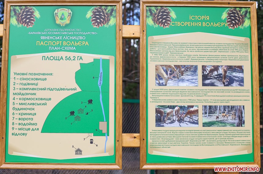 У селі Явне Баранівського району, у вольєрі площею 56,2 га, вирощують оленів «на розвід». Зараз їх тут близько 40. Їх продають у інші лісництва. Тут також тут розводять диких кабанів. Буревій 24 вересня налякав оленів, і вони не вийшли до людей на годування.