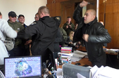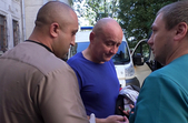 «Мене швидка забирає. Як ви думаєте, якщо мене повалило 25 людей, били, потім зажали в куток і кидали предмети, то у мене була можливість писати заяву?», - коментує ситуацію після штовханини та бійки адвокат Андрій Гожий.