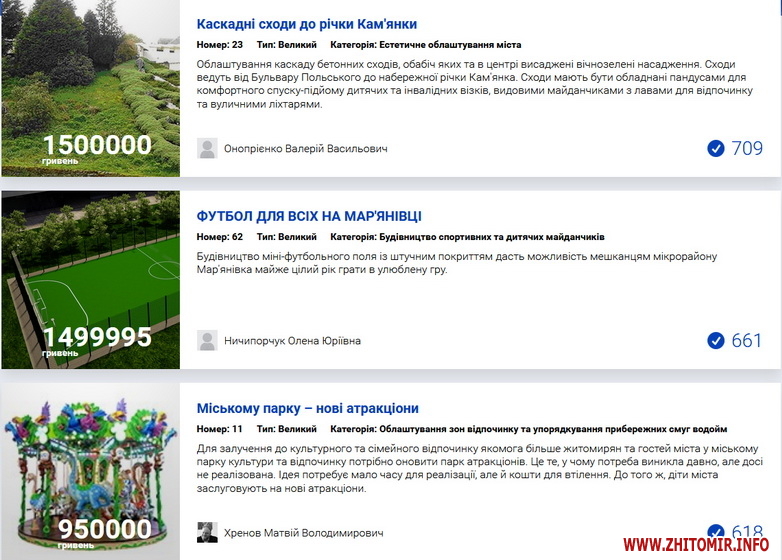 Як повідомляв Житомир.info, у 2018 році з міського бюджету на реалізацію проектів бюджету участі виділено 15 млн 200 тис. грн.
