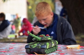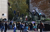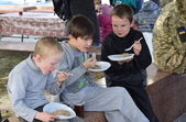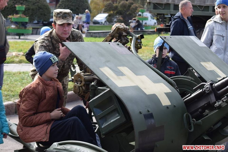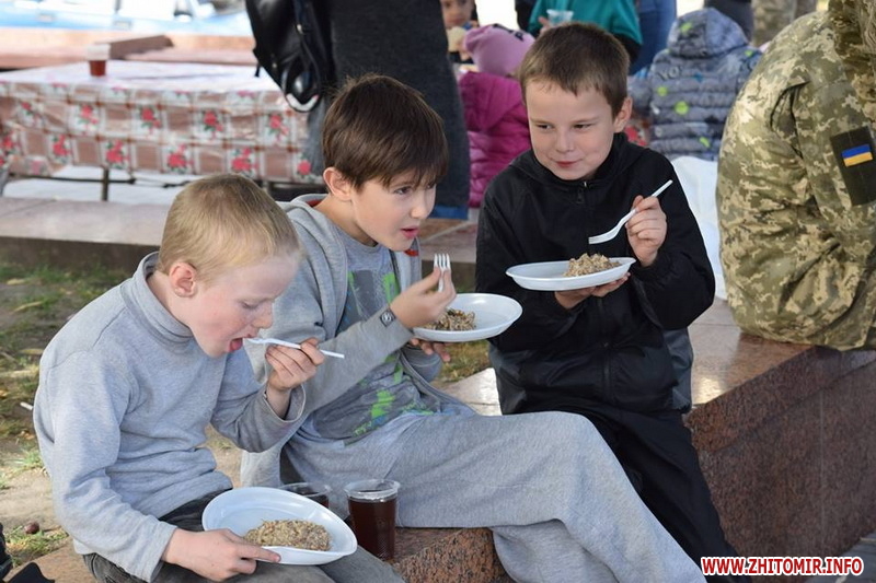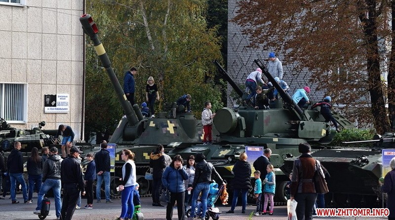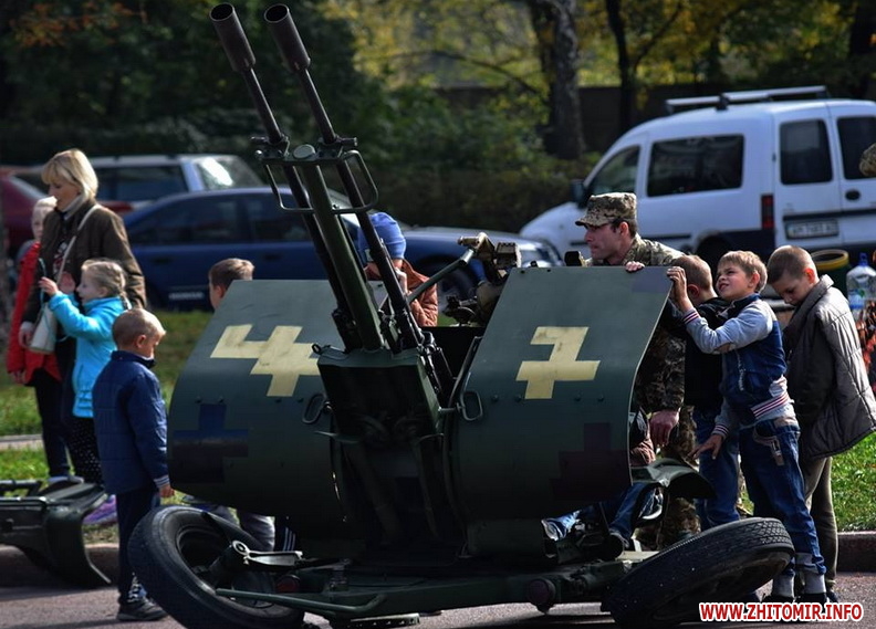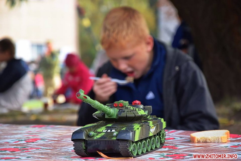 «Біля військової техніки ажіотаж: покрутити ручки, понатискати кнопки, посмикати важелі й приціли — військові дозволяють робити все. БМП, танк і САУ густо обліплені дитячим "десантом". Стволи спареної зенітної установки ЗУ-23-2 постійно в русі. "Завзяті молоді бійці" швидко розібралися із тонкощами управління засобом протиповітряної оборони і нещадно "нищать" умовного противника, крутячи на 360 градусів спареними стволами ЗеУшкі. "Повоювавши" на бойовій техніці, можна і підкріпитись. Для цього військові з групи матеріально-технічного забезпечення приготували смачної гречаної каші та солодкого чаю. "Накормили приблизно до трьох сотень чоловік, - каже повар, - але бажаючих посмакувати військовою кашею не зменшувалось"», - інформують у 30-й бригаді.