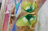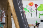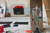 «Я працюю інтуїтивно і не планую заздалегідь, що буде на картині. Так як ми в Україні, я змішав кольори прапору - жовтий та синій. В результаті, вийшов зелений колір, колір миру. На противагу яскравому кольору, другу частину картини я розфарбував у чорним і якщо придивитися, то там проглядається силует людини. Якщо глядач побачить там обличчя, це послугує йому містком, щоб шукати образи в картині далі», - каже Бімасена Александр Гріем.