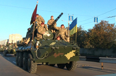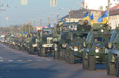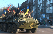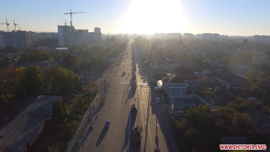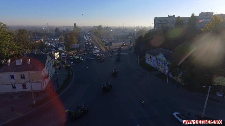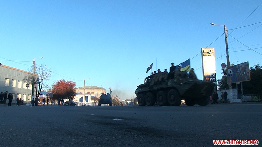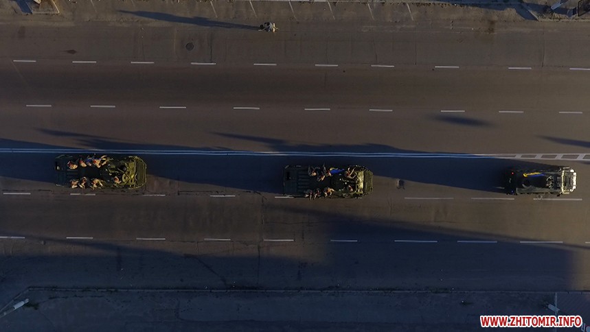 Рівно о 8:00 механізована колона виїхала із розташування 95-ї бригади на Богунії. Десантники проїхали проспектом Миру, проспектом Незалежності, вулицею Вітрука.