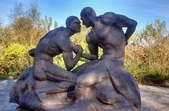 У парку міста Коростишів Житомирської області встановили скульптуру з братами Кличками.