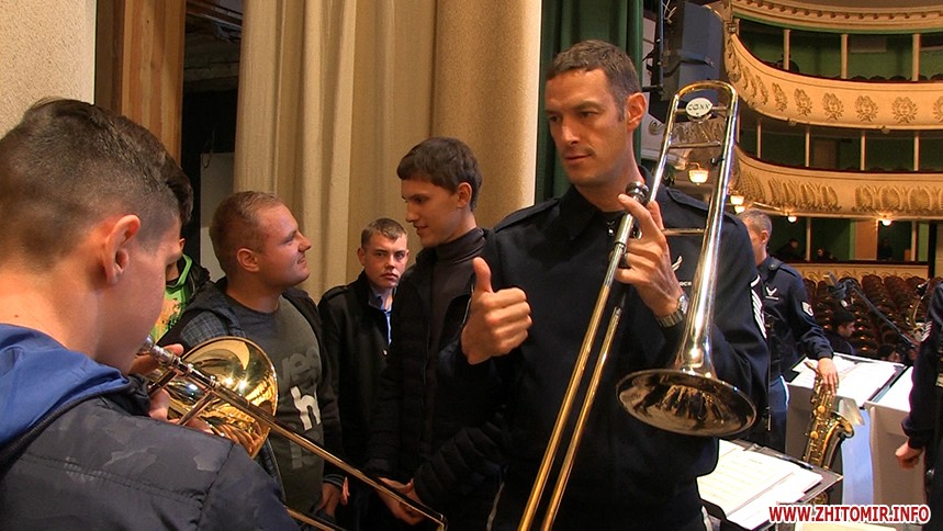 «Національний президентський оркестр неодноразово прибував до Житомира із концертами. Востаннє ми були тут майже півроку тому, і тоді наш колектив виступав у Житомирській філармонії. І тоді в концерті брав участь диригент оркестру пана Дона Скофілда Джастін Льюїс. Він є капітаном ВПС США і диригентом Оркестру ВПС США в Європі. Коли після концерту ми побачили, наскільки гостинно нас приймає Житомир, виникла така спонтанна ідея - а чому б не приїхати сюди через півроку? Ідея виникла, ідея реалізована завдяки моєму другу Дону Скофілду. І я надзвичайно радий, що це усе може відбутись в Житомирі», - каже диригент Національного Президентського оркестру Максим Гусак.