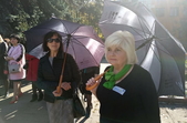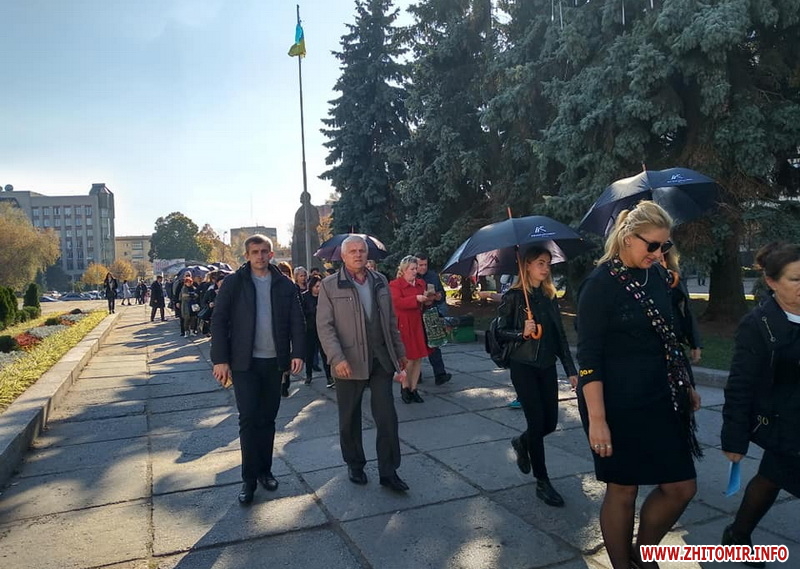 Учасники акції рухалися від бібліотеки Ольжича до Укртелекому, через вулицю Михайлівську. В руках житомиряни тримали парасолі й жовті плакати.