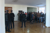 Врешті після словесних суперечок із правоохоронцями активісти все ж пройшли до прес-центру, де відбувалось засідання комісії і одразу ж закликали не ховатись за спинами поліцейських та молодиків спортивної статури.