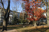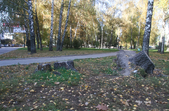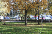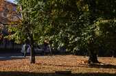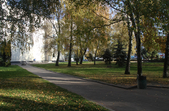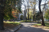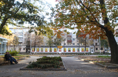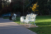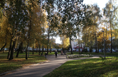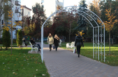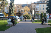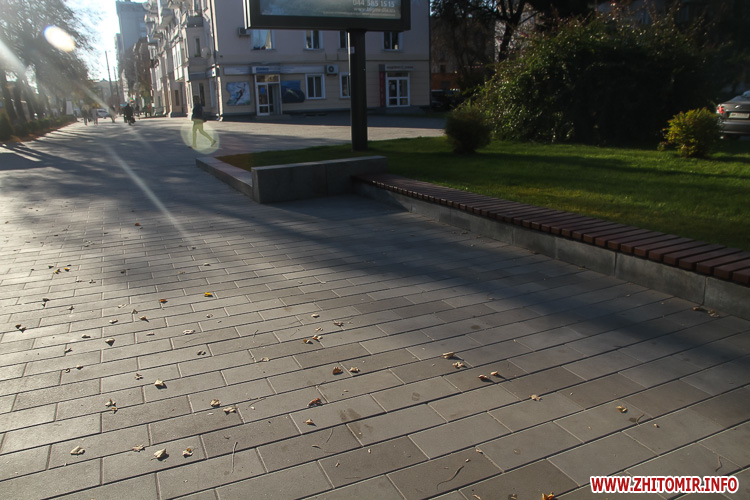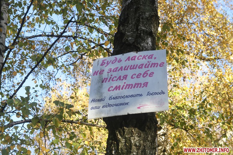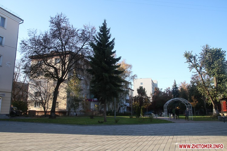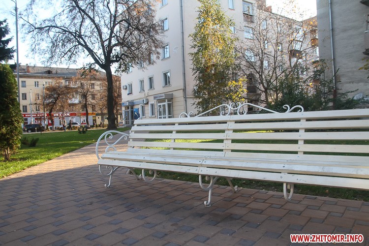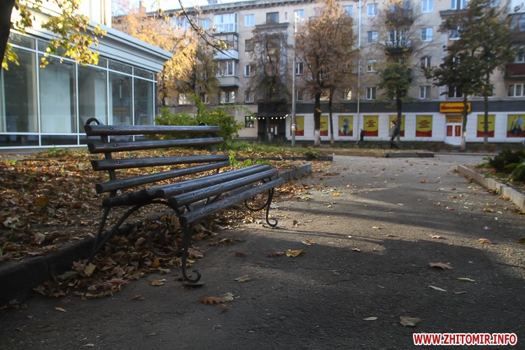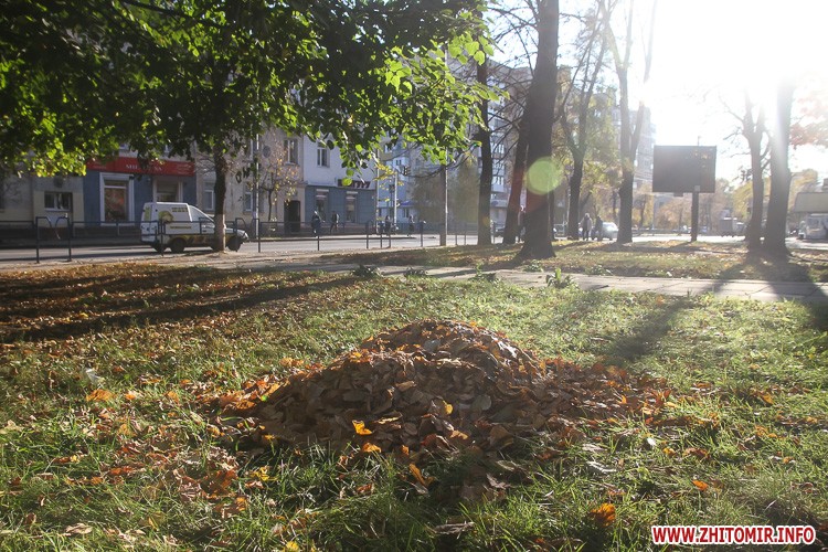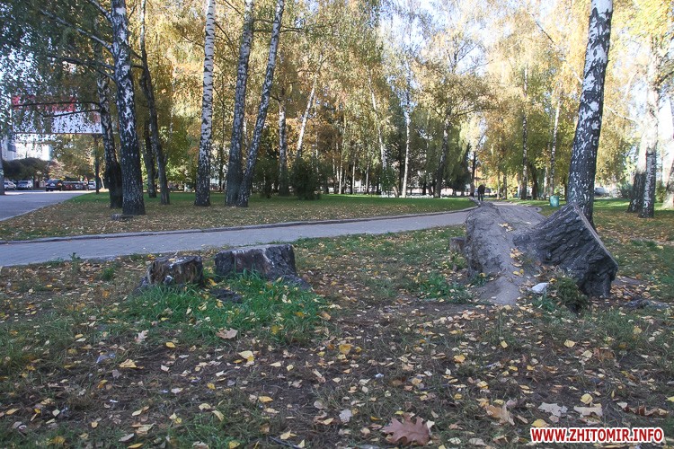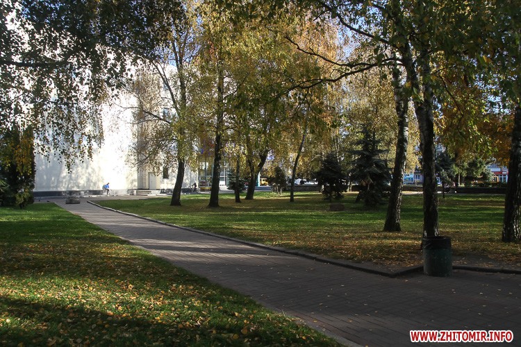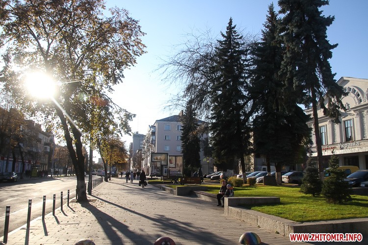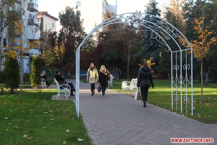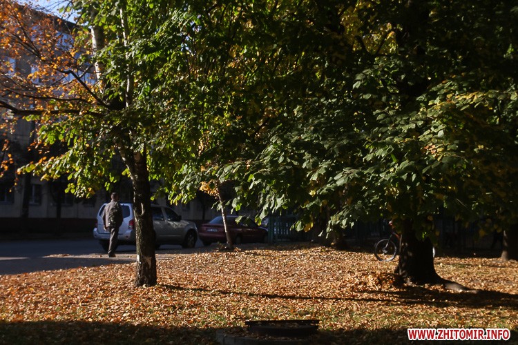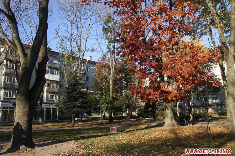 У будень тут малолюдно: лише поодинокі житомиряни прогулюються скверами, відпочивають на лавках, а дехто й приліг просто на траві, насолоджуючись ще теплими осінніми градусами.