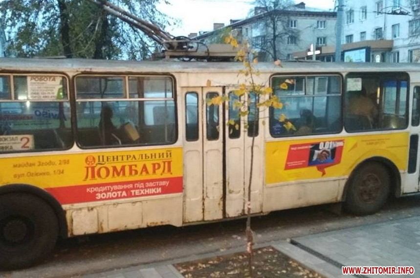 Пасажирам житомирського тролейбуса №2, який зупинився через порив дротів на вулиці Київській у Житомирі, не повернули гроші за проїзд.