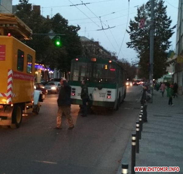 «Були жінки з Житомирського району, яким ще треба було витратити 8 гривень на приміську маршрутку. Ми почали вимагати повернення коштів за квитки. Справа не в трьох гривнях, а в порушенні прав пасажирів. Кондуктор сказала, що ми не їдемо не з причин ТТУ, і що вона не може повернути кошти, бо вони пройшли через валідатор. Назвала нас скандалістками і зачинилася в кабіні водія. Я вийшла з тролейбуса і пішла пішки. Коли дійшла до вулиці Східної, тролейбуси відновили рух», - розповіла житомирянка. Мережі були знеструмлені близько півгодини.
