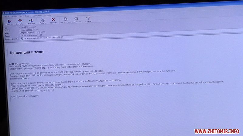 «Переписка в телеграмі між Муравицьким та особою під номером телефону, який працює в межах РФ, з приводу публікації статей на сайті «Політнавігатор», - каже прокурор Вадим Левченко.