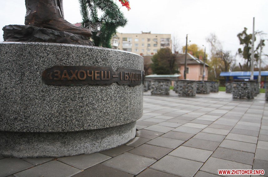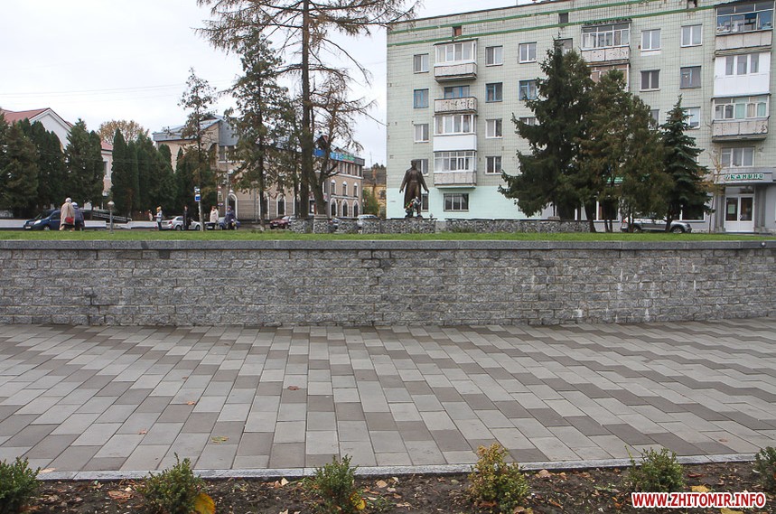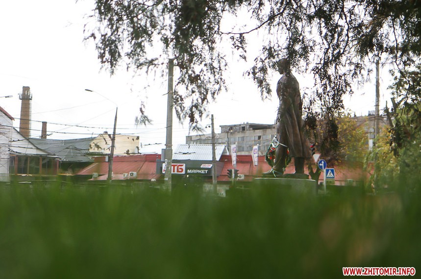 Раніше на цьому місці стояв гранітний пам’ятник червоному командирові Олександру Пархоменку, який 26 лютого 2015 року демонтували житомирські свободівці.