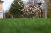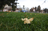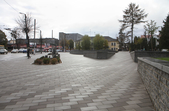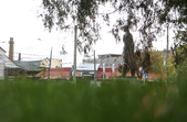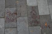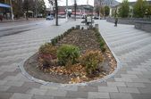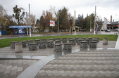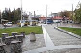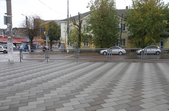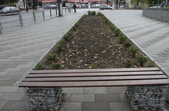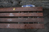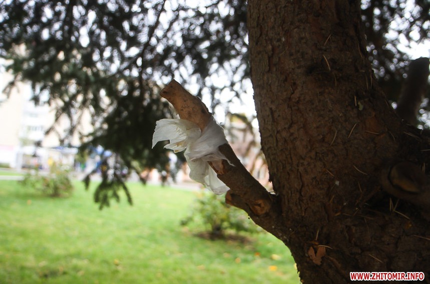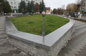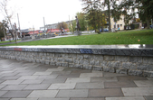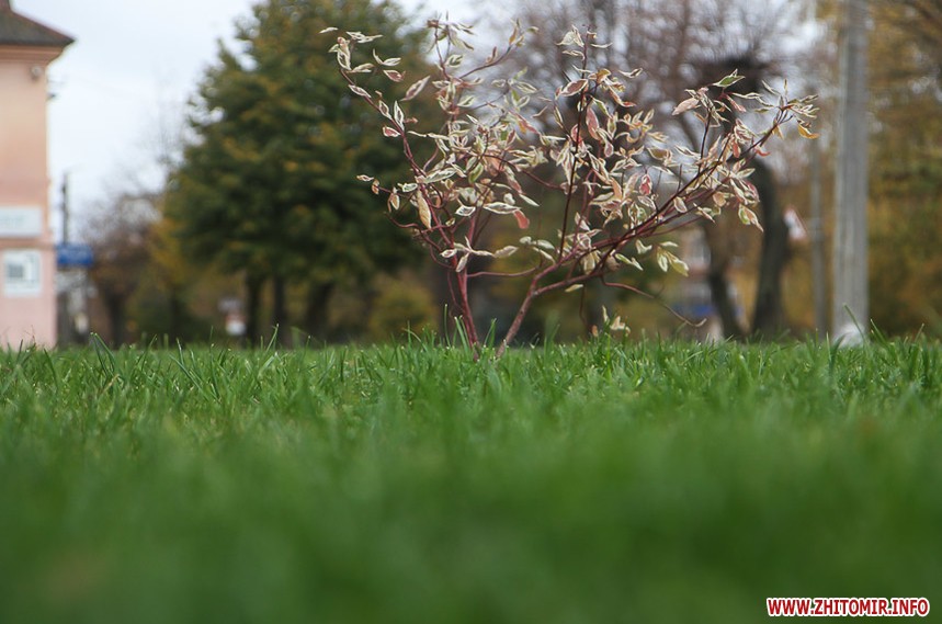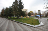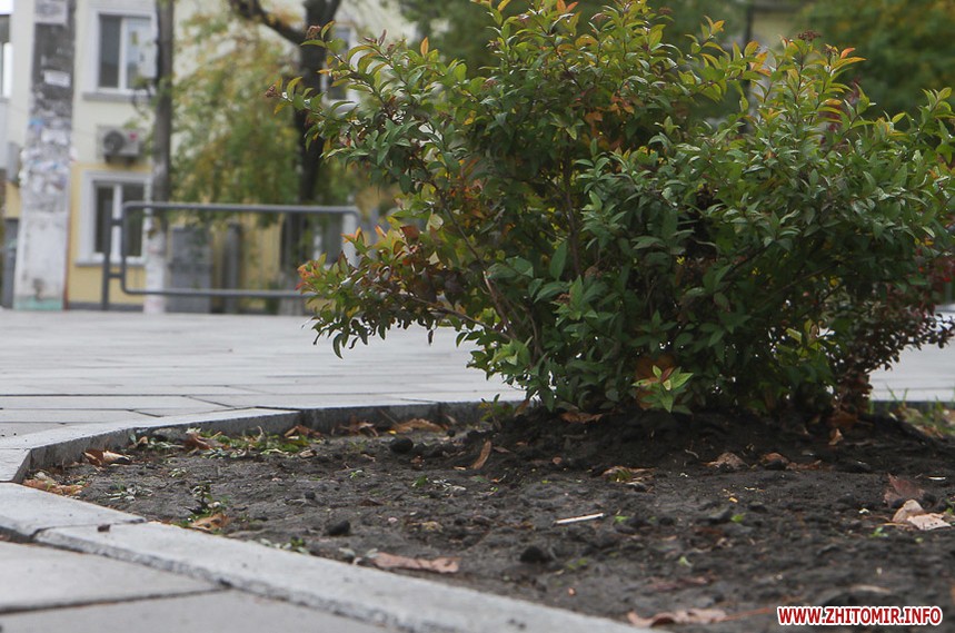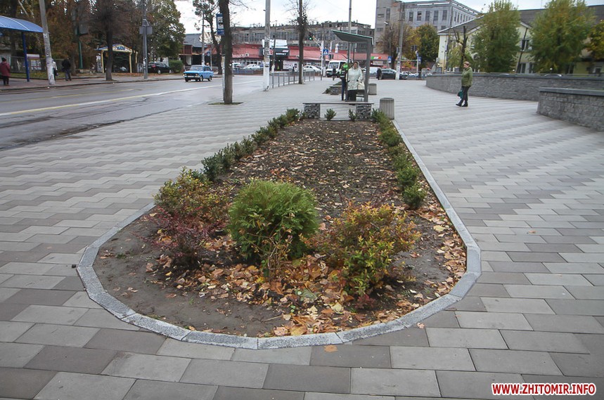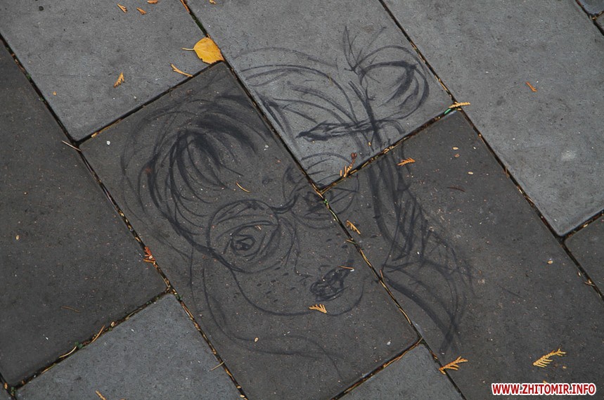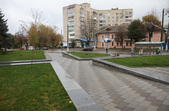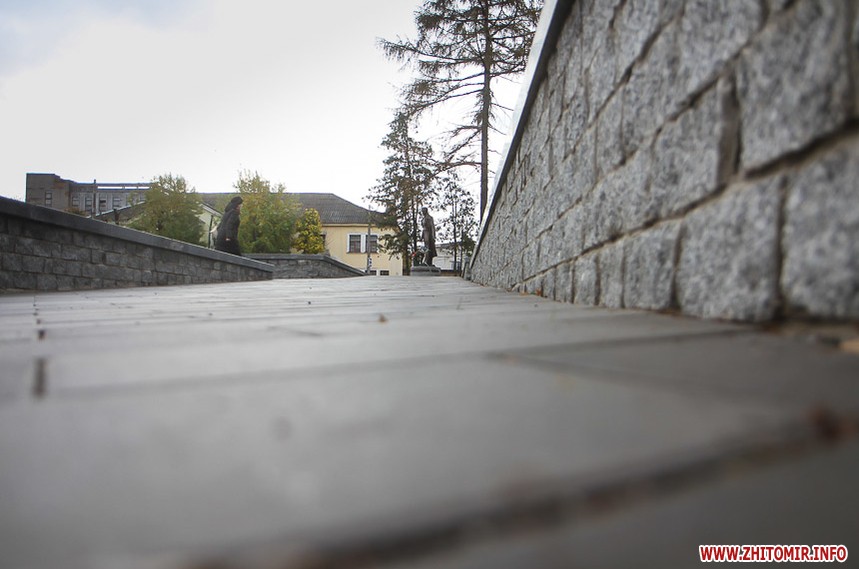 Цього дня біля бронзового Ольжича – вінок зі штучних квітів. Сквер майже не змінився: той самий газон, лавки з підніжками із дробленого каменю, декоративні кущі. З нового хіба що графіті на гранітному окантуванні і тротуарній плитці.