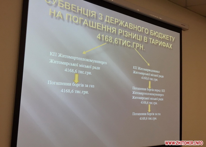 Житомирський виконком підтримав запропонований варіант розподілу субвенції з державного бюджету і направив 4 млн 168,6 тис. грн на КП «Житомирводоканал» для погашення боргів за тепло.