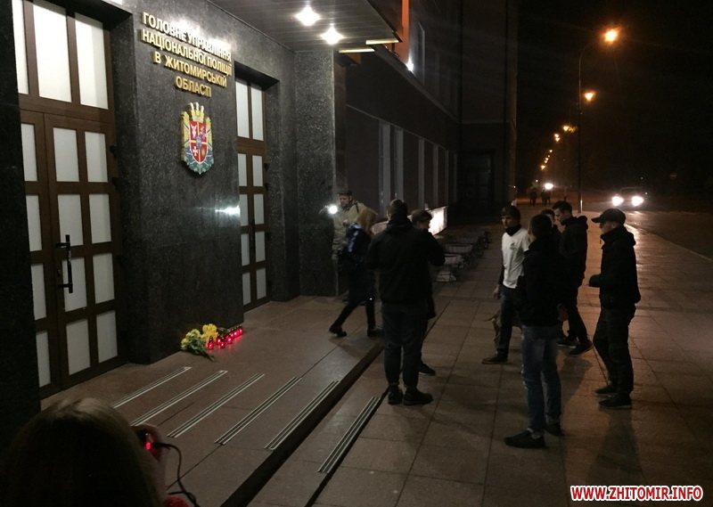 4 листопада о 19:00 у Житомирі біля стін головного управління Нацполіції у Житомирській області зібралися містяни, аби вшанувати пам'ять Катерини Гандзюк, яка після довгих лікувань померла в лікарні.