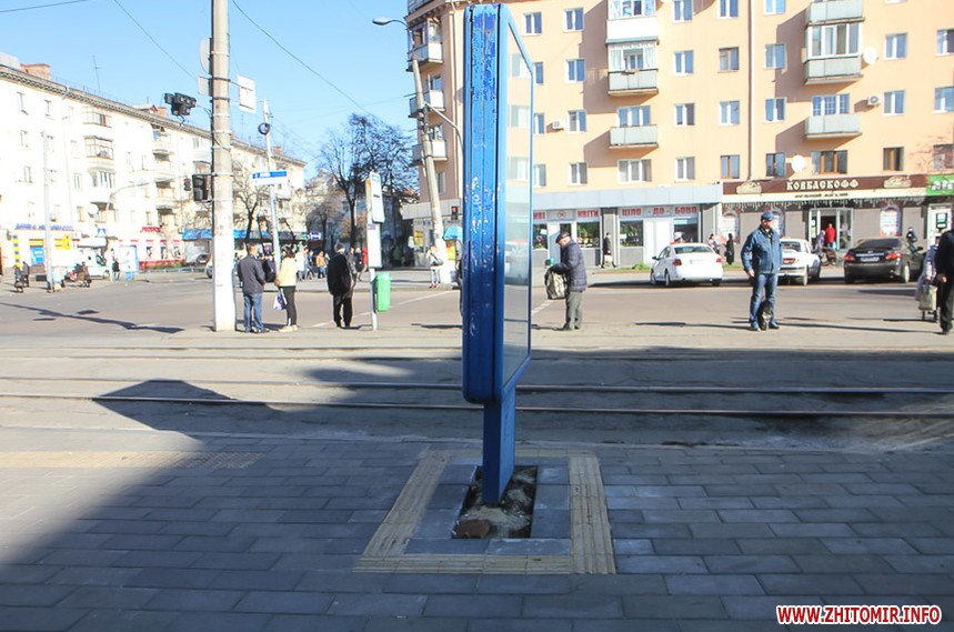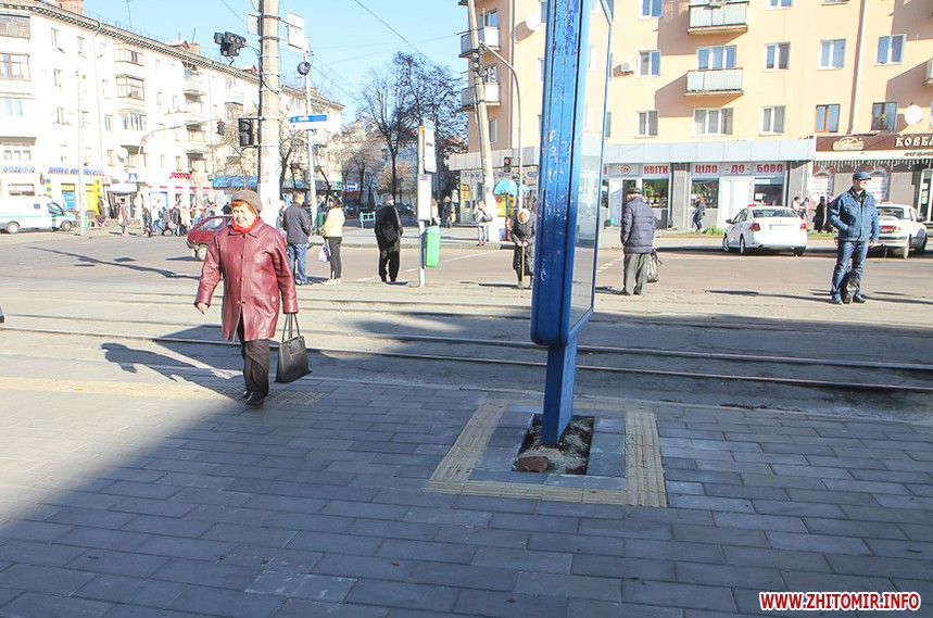 Зранку 7 листопада на своїй сторінці у Facebook головний архітектор Житомира Юрій Безбородов опублікував фото з нещодавно укладеною тактильною плиткою по вулиці Київській. Найбільше архітектора здивувала плитка, яка була укладена навколо сіті-лайту.