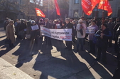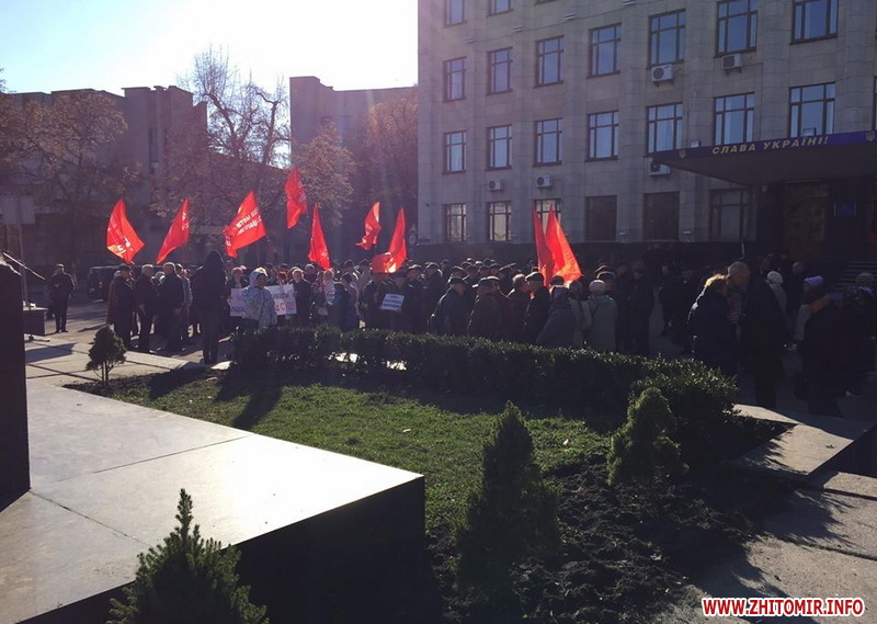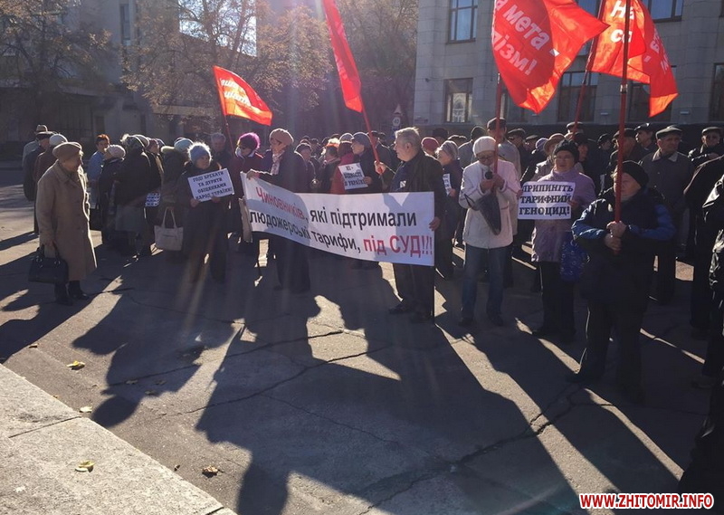 На плакатах, які житомиряни тримають в руках, написано заклики припинити тарифний геноцид, і віддати під суд чиновників, які підтримали «людожерські тарифи». На транспарантах написано – «Наша мета - соціалізм».