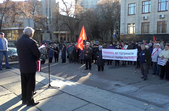 Нагадаємо, 7 листопада на майдані Корольова у Житомирі о 13:00 на мітинг зібралися близько сотні людей з плакатами та червоними прапорами.