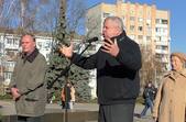 Колишній депутат облради від КПУ, директор агротехнічного коледжу, якого представили як «першого секретаря обкома партії», Микола Тимошенко у своєму виступі висловив своє обурення щодо закриття великих промислових підприємств у місті.