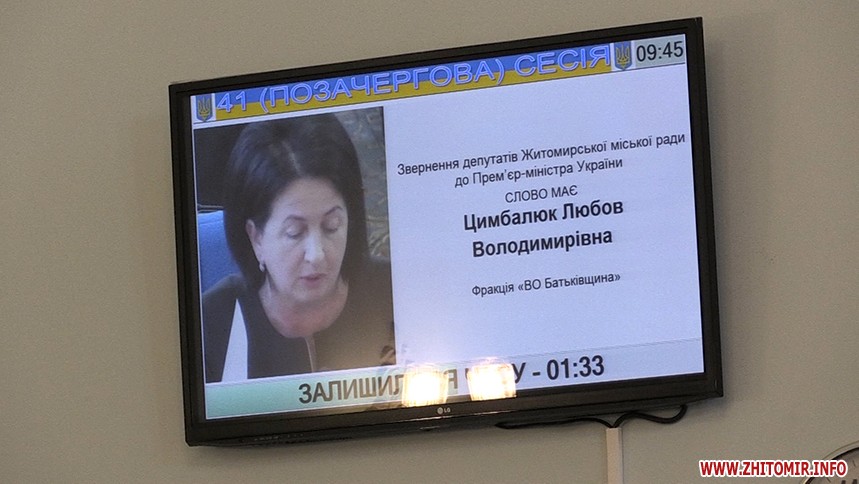 8 листопада депутати Житомирської міської ради на другому пленарному засіданні позачергової сесії ухвалили текст звернення щодо ціни на газ. Під час обговорення першою слово взяла голова фракції ВО «Батьківщина» в міській раді Любов Цимбалюк. За її словами, текст звернення не є досконалим, ба більше - деякі формулювання потрібно взагалі змінити.