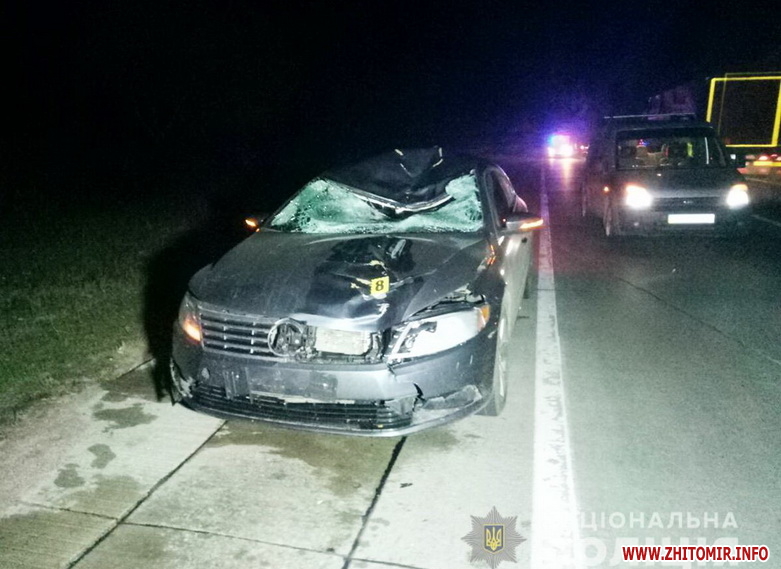 «За попередньою інформацією, водій автомобіля Volkswagen SS, 42-річний житель м. Києва, вчинив наїзд на пішохода, який перебігав дорогу. Унаслідок ДТП чоловік загинув на місці події. Поліцейські встановили, що загиблий - житель м. Коростеня, 1982 р.н», - повідомили у поліції.