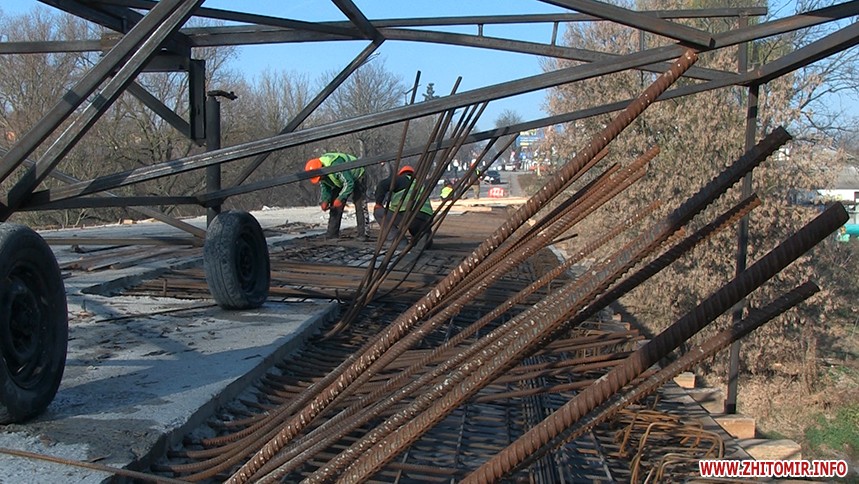 У Радомишлі, що на Житомирщині, взялися реконструювати міст через річку Тетерів, який більше півсотні років не бачив капітального ремонту. Голова місцевої ОТГ Володимир Тетерський розповідає: міст, зведений у 1964 році, давно почав розвалюватися по частинам, а у 2010 році його взагалі офіційно визнали непридатним до експлуатації.