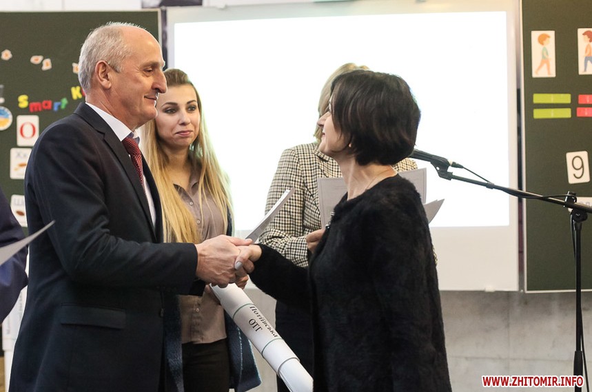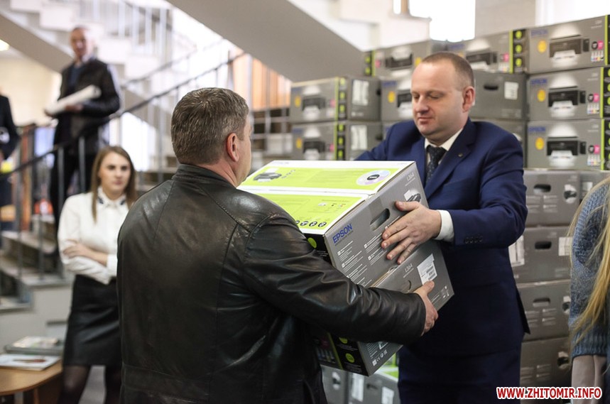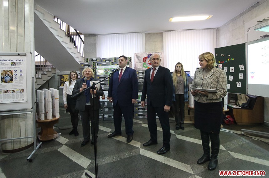 14 листопада голова Житомирської ОДА Ігор Гундич та голова облради Володимир Ширма передали школам ноутбуки, принтери та ламінтори. За допомогою цього обладнання вчитель зможе готувати цікаві інформаційні картки, роздруковувати завдання та проводити уроки у вигляді гри.