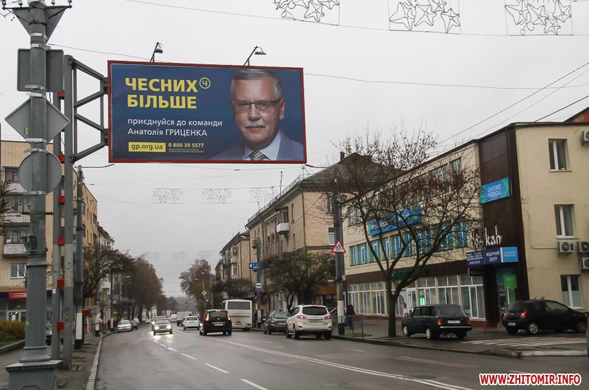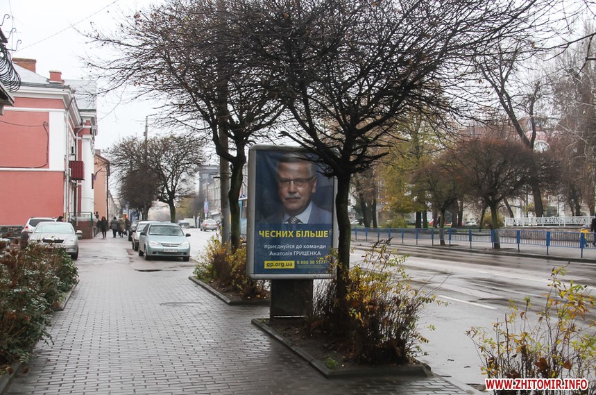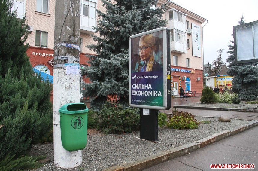 Чим ближче до виборів, тим більше агітації від майбутніх кандидатів в президенти з’являється на вулицях Житомира. Хто найбільш активний в середмісті 15 листопада подивився наш фотокореспондент.