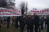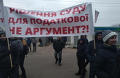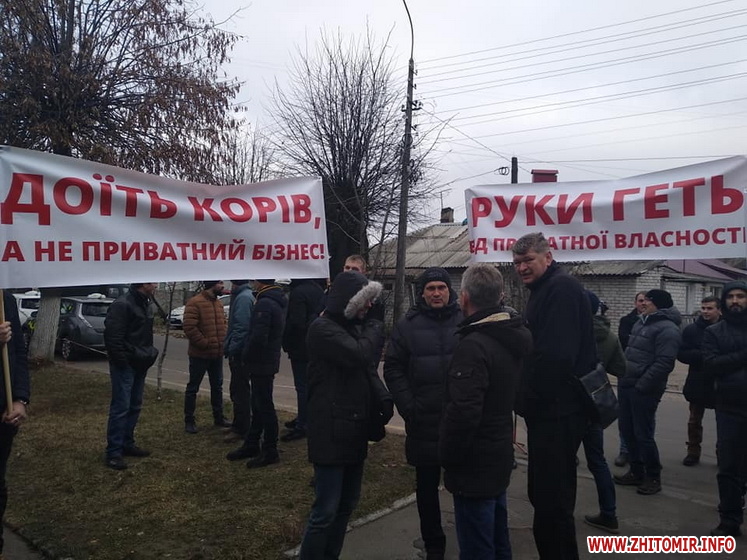 Люди тримають в руках плакати: «Закон один для всіх», «Руки геть від приватного бізнесу», «Доїть корів, а не приватний бізнес», «Рішення суду для податкової не аргумент?!». Останнє стосується рішення Богунського районного суду м.Житомира, який 19 листопада розглядав клопотання представника Слідчого управління фінансових розслідувань ГУ ДФС у Житомирській області про накладання арешту на вилучене майно і у задоволенні клопотання відмовив.