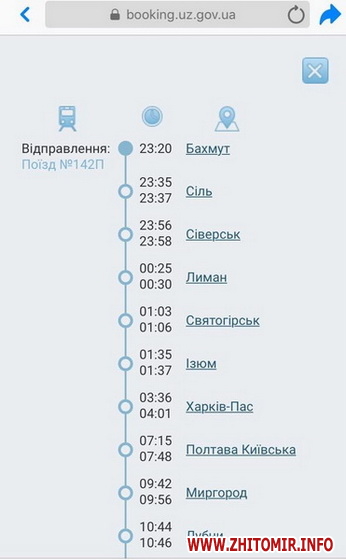 «З 10 грудня ми матимемо пряме залізничне сполучення зі Львовом, Борисполем, Полтавою та Харковом! На сайті «Укрзалізниці» вже можна забронювати квиток на потяг 142П Бахмут-Львів, який їхатиме через Житомир. Дуже важливо, що тепер житомирські військові зможуть без пересадок їздити в зону проведення ООС. Потяг курсуватиме через Ізюм, Лиман, Святогірськ до Бахмута. Я неодноразово звертався з цього питання до керівництва ПАТ «Укрзалізниця» і міністра інфраструктури Volodymyr Omelyan. Дякую за розуміння ситуації і допомогу! Вітаю усіх житомирян!», - написав на своїй сторінці Сергій Сухомлин і додав, що остаточний графік в «Укрзалізниці» обіцяють оприлюднити після 26 листопада.