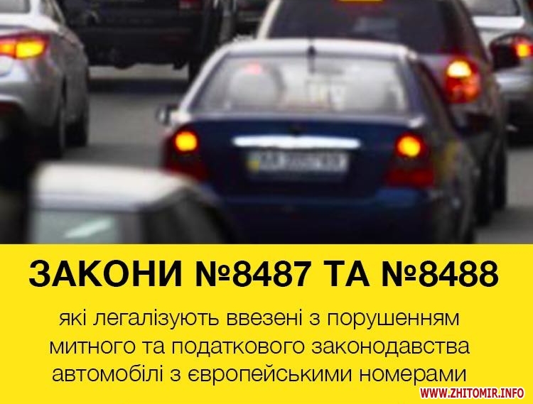 Як повідомляв Житомир.info, 20 листопада рух транспорту на об'їзній дорозі Житомира був ускладнений через акцію власників «євроблях». Пізніше учасники акції, протестуючи проти законів 8487 і 8488, які вони вважають антинародними, змінили місце розташування. 21 листопада власники автомобілів на європейських номерах продовжили перекривати дороги в декількох областях України, в тому числі й поблизу Житомира.