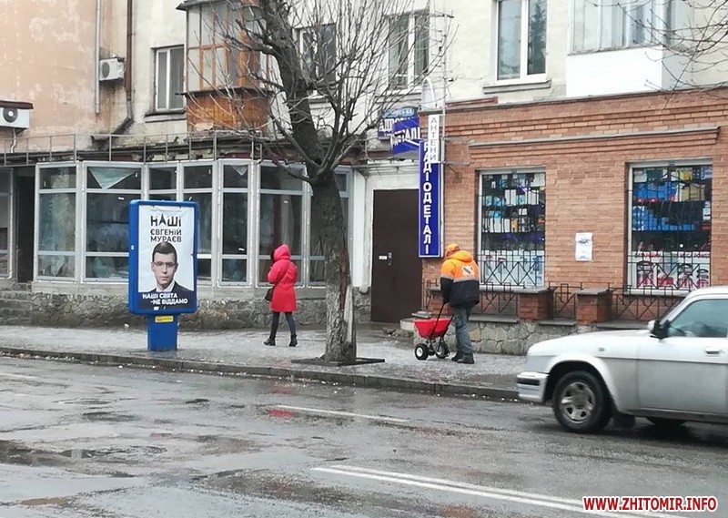 «На жаль, ми очікували сніг, а пішов крижаний дощ. Цього ніхто не міг передбачити, але вже з 4-ї години ранку працювало чотири великі машини – розкидали піщано-соляну суміш по дорогах. З 8-ї години ранку ми почали працювати по тротуарах. Люди оперативно зібрались, почали вручну та за допомогою спеціальних візків посипати піщано-соляною сумішшю та бішофітом. Відзвонилися ЖЕКам, ті що відповідають за прилеглі території. Ми їм привезли протиожеледні суміші і вони вже працюють над посипанням тротуарів», - розповів у коментарі Житомир.info Сергій Янушевич.