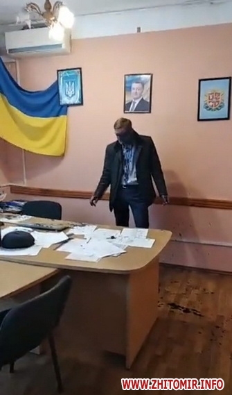 У Житомирі 27 листопада керівника обласного управління Держгеокадастру Сергія Музиченка облили зеленкою в робочому кабінеті.