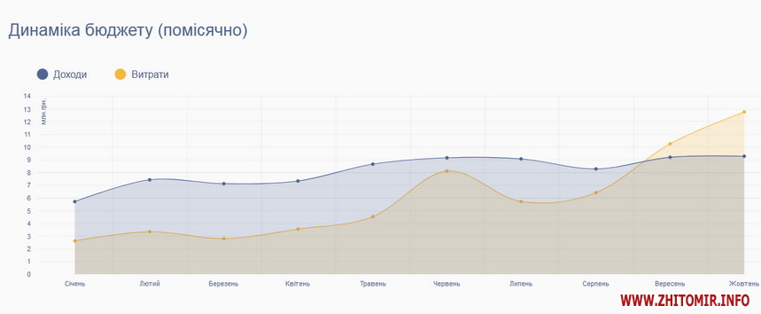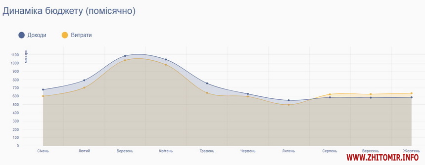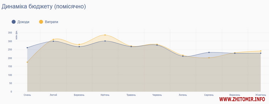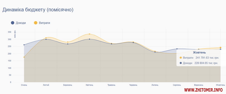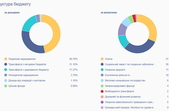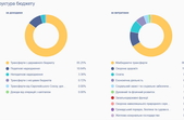 Зокрема, можна побачити інформацію про доходи та витрати – загальні відсотки та структура за напрямами. Є також помісячна динаміка бюджету, де можна подивитися витрати та доходи за кожен місяць.