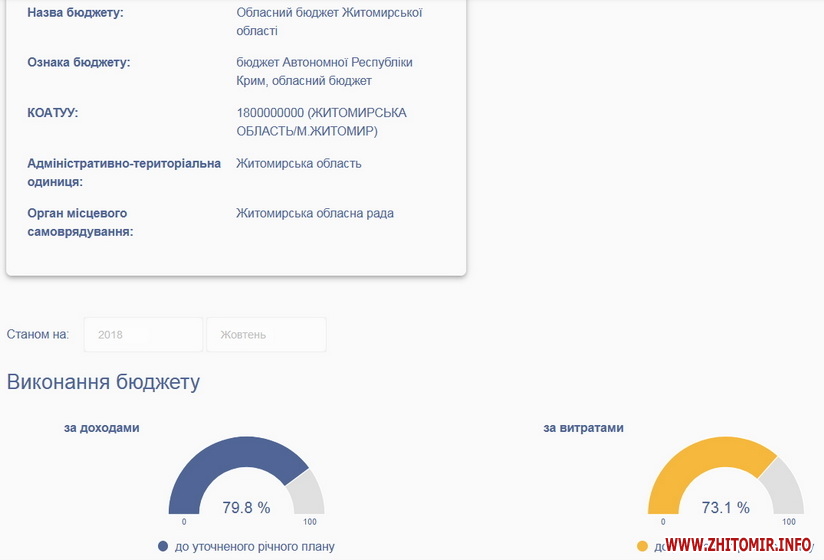Тепер можна дізнатися які бюджети в Житомирській області вже майже витрачені, а де ще залишилося майже 50% коштів, на що і скільки витрачають місцеві органи влади та багато іншої цікавою бюджетної інформації.