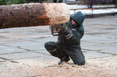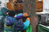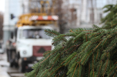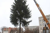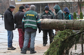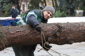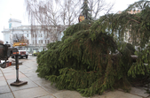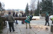 За словами комунальників, ялинку зрізали зранку 5 грудня, сьогодні ж її планують прикріпити до основи. Аби ялинка виглядала більш розкішною та пишною, знизу «наростять» додатковий ярус гілок.