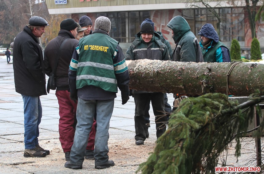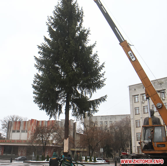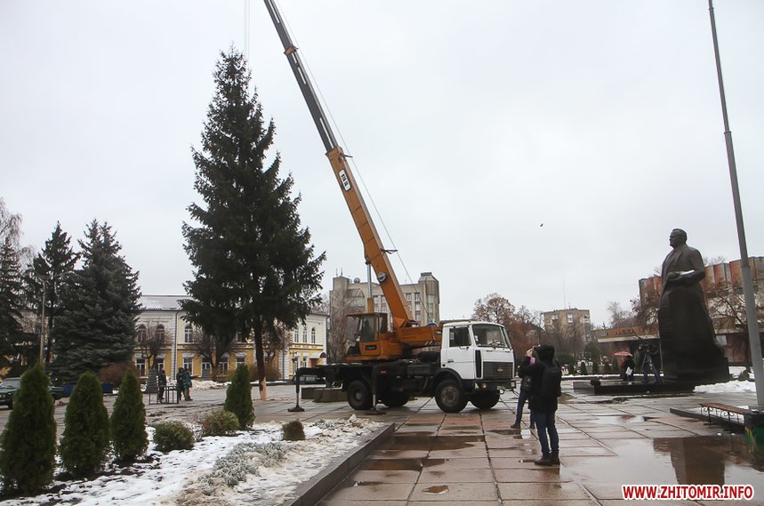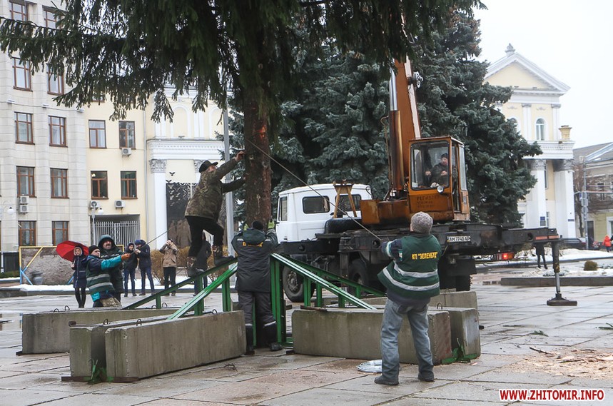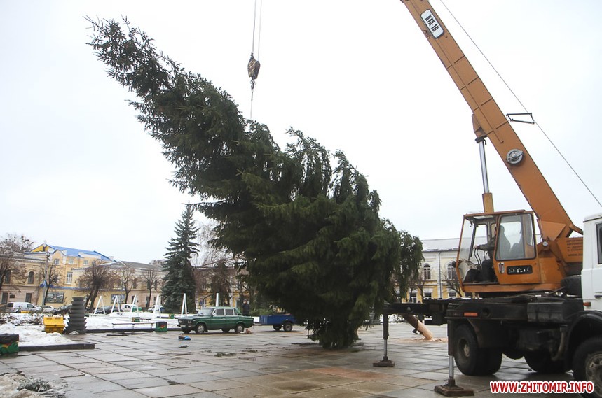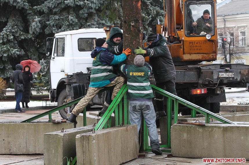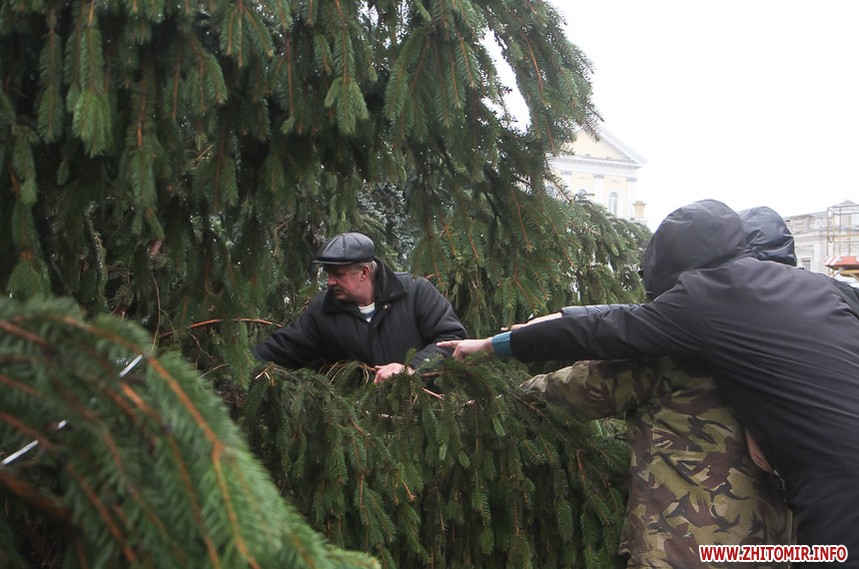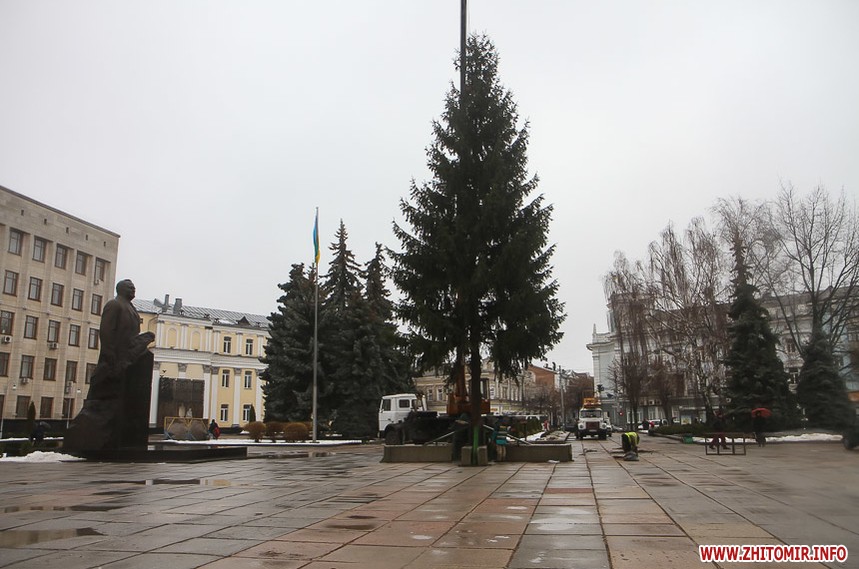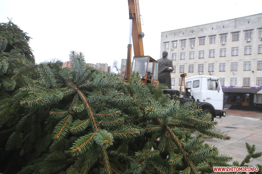 5 грудня на майдані Корольова у Житомирі почали встановлювати новорічну ялинку. Вперше за останніх 11 років головний символ новорічно-різдвяних свят буде пахнути хвоєю – житомирян тішитиме не штучне, а живе дерево.