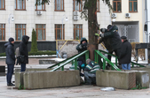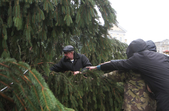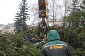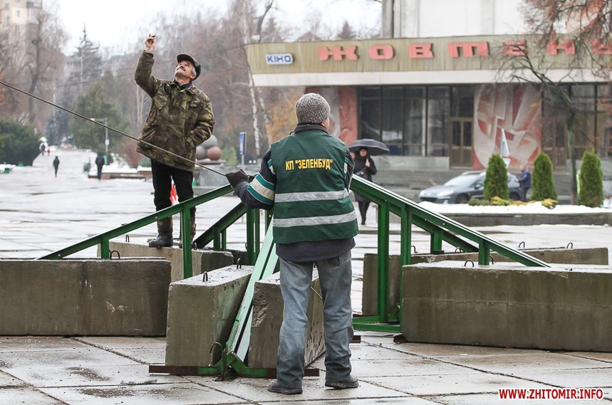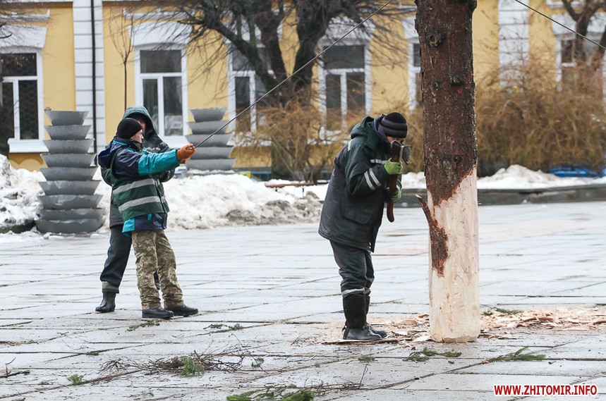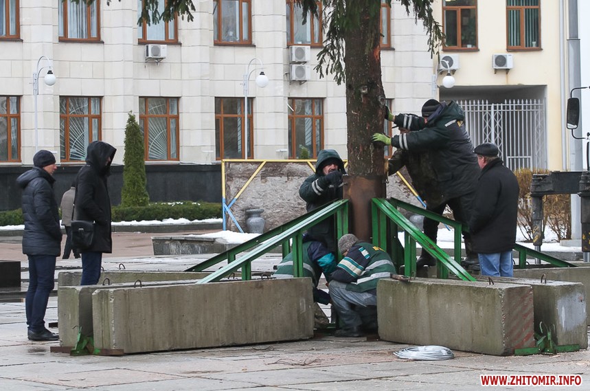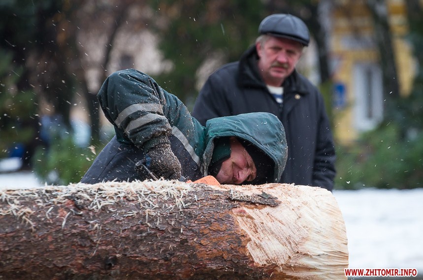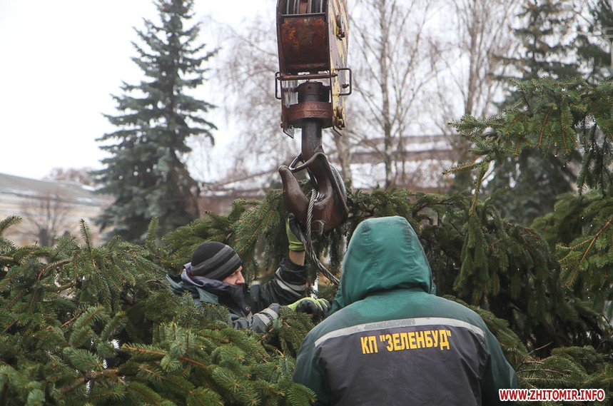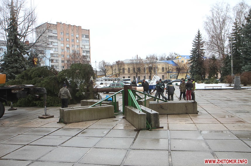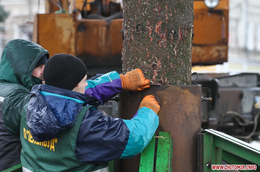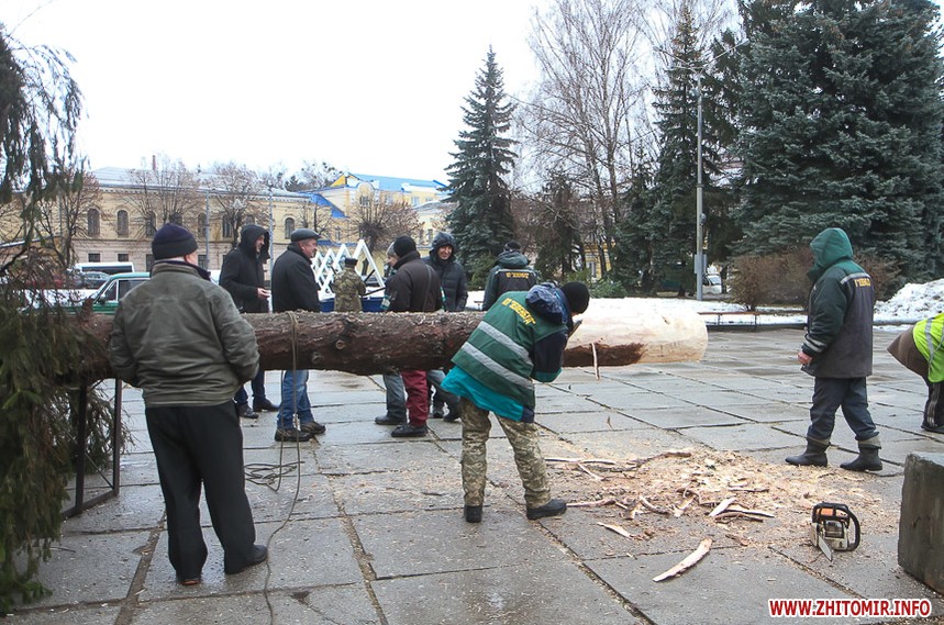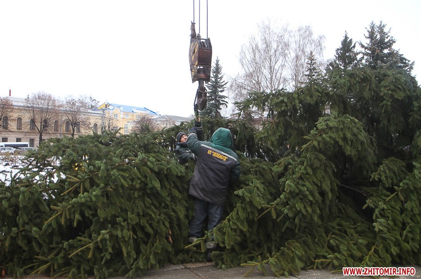 5 грудня на майдані Корольова у Житомирі почали встановлювати новорічну ялинку. Вперше за останніх 11 років головний символ новорічно-різдвяних свят буде пахнути хвоєю – житомирян тішитиме не штучне, а живе дерево.