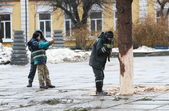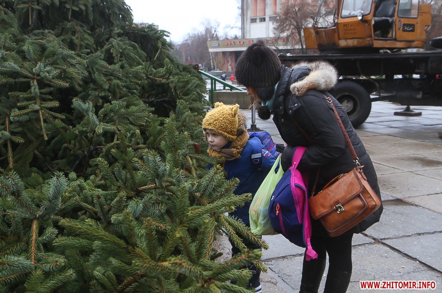 Вдихнути запах свята хочеться й іншим житомирянам – вони нагинаються до ялинки, що ще лежить на землі, нюхають зелені голочки, а також просять сфотографувати їх біля ще неприкрашеного символу новорічно-різдвяної пори.