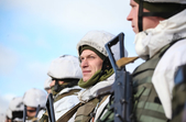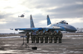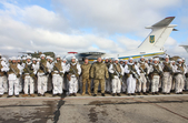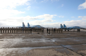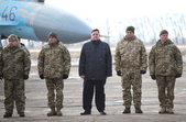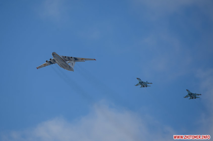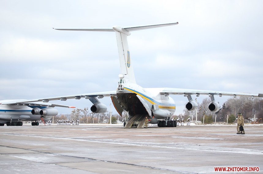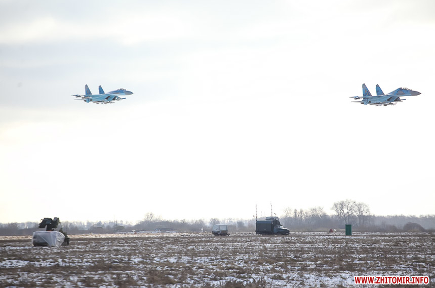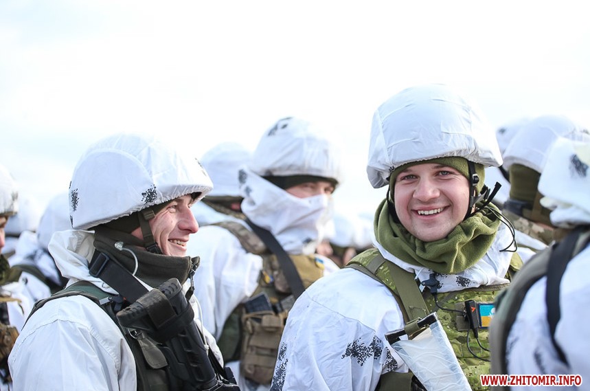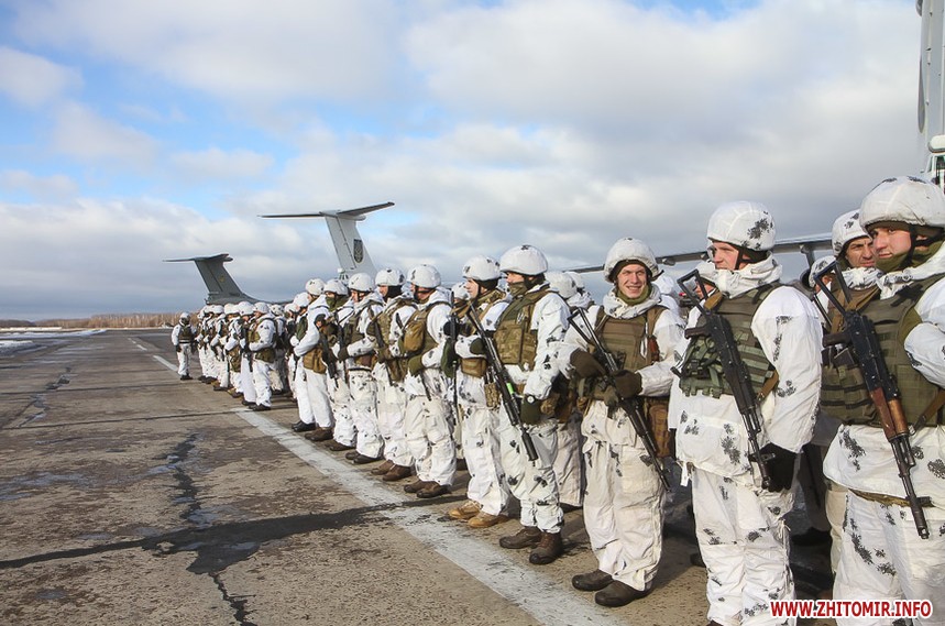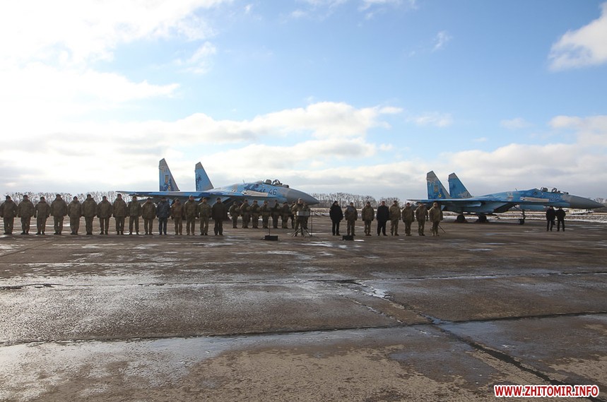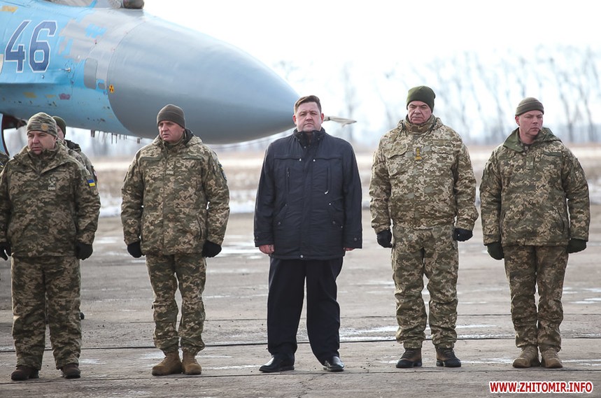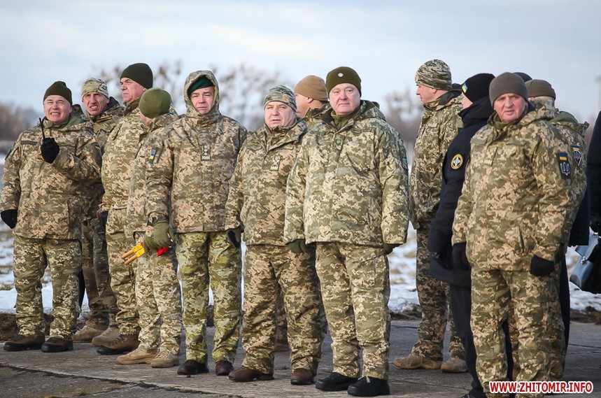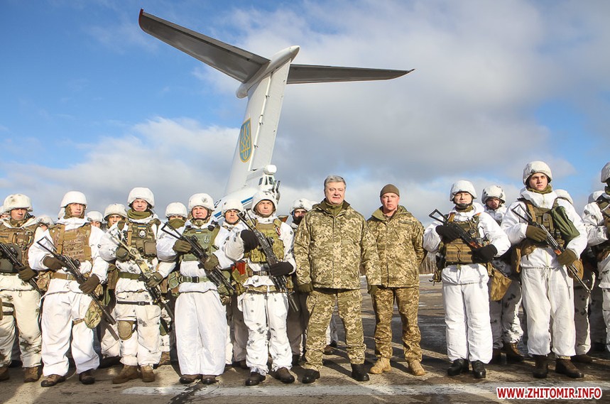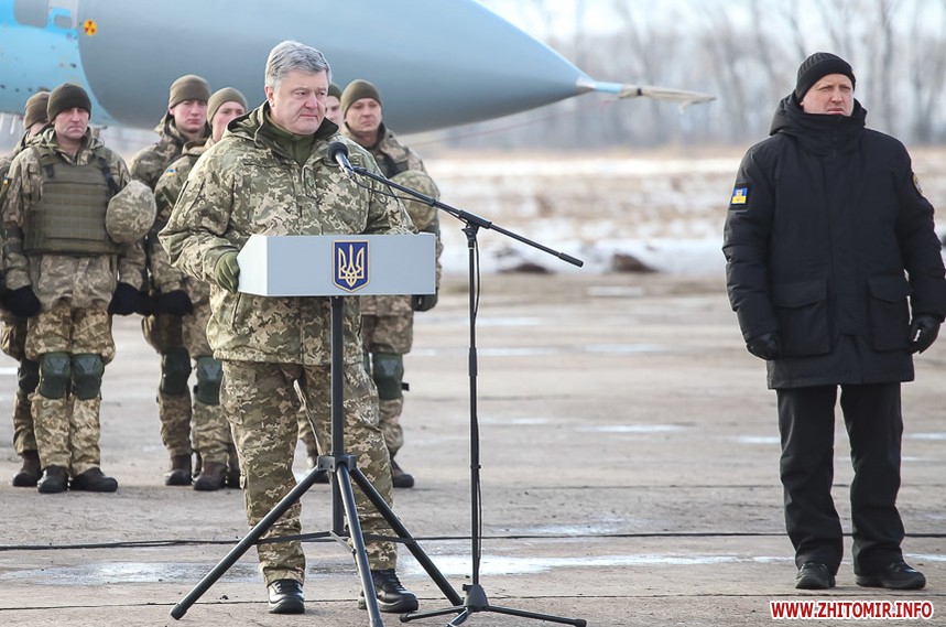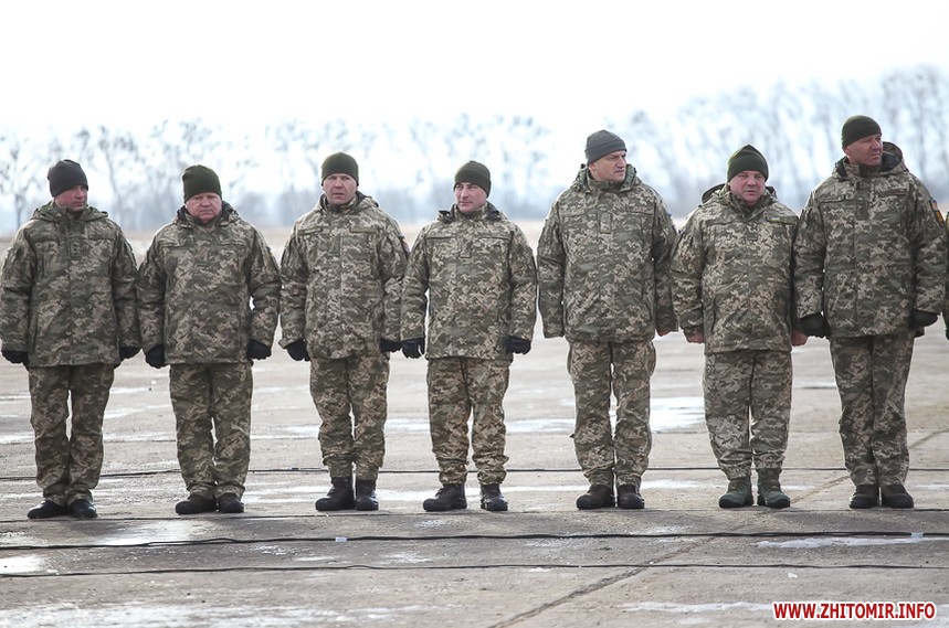 Верховний Головнокомандувач Збройних сил України Петро Порошенко, командувач Високомобільних десантних військ ЗСУ Михайло Забродський, військові командири та чиновники на аеродромі в Озерному під Житомиром привітали військових з Днем Збройних сил України.
