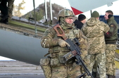 У День Збройних Сил України на аеродромі в Озерному під Житомиром близько 200 десантників готуються не до святкувань, а до вильоту на Схід - для виконання бойових завдань та захисту країни. Напоготові не лише бійці, а й військова техніка з літаками. Провести мужніх воїнів та привітати останніх зі святом приїхало військове керівництво держави, Президент України Петро Порошенко, командувач ДШВ, Герой України Михайло Забродський та голова Житомирської облдержадміністрації Ігор Гундич.