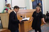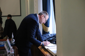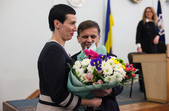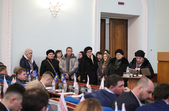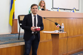 На початку засідання мер Сергій Сухомлин вручив ключі від квартир трьом дітям-сиротам, а після розгляду всіх питань порядку денного надав слово присутньому на засіданні народному депутату від Житомира Бориславу Розенблату.